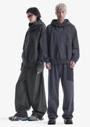 - Двуслойный капюшон с высоким воротником, затяжником и застёжкой на кнопках