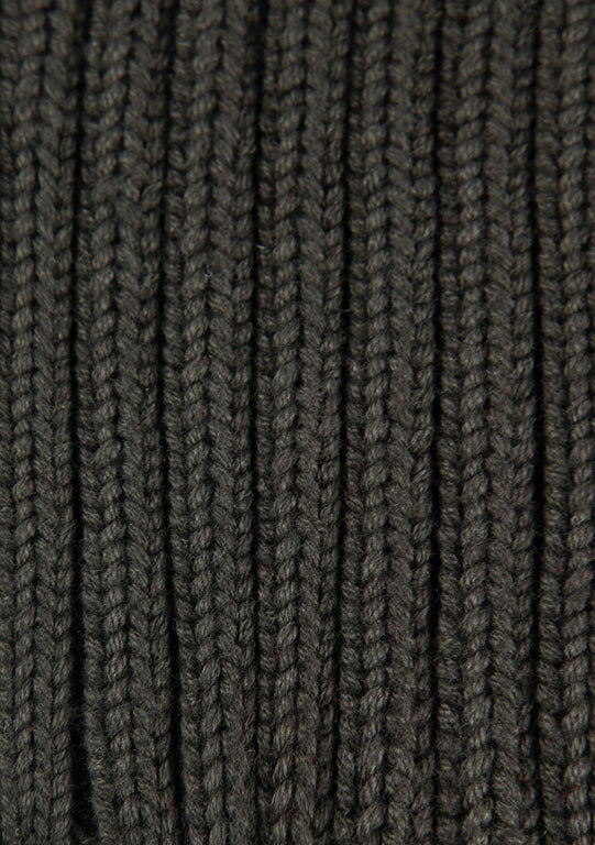 Вязаная хлопковая шапка с крупной ребристой фактурой. Может носиться с отворотом или без.