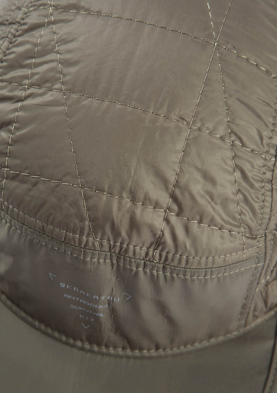 Стёганая кепка с водотталкивающим покрытием полностью сделана из переработанных материалов.