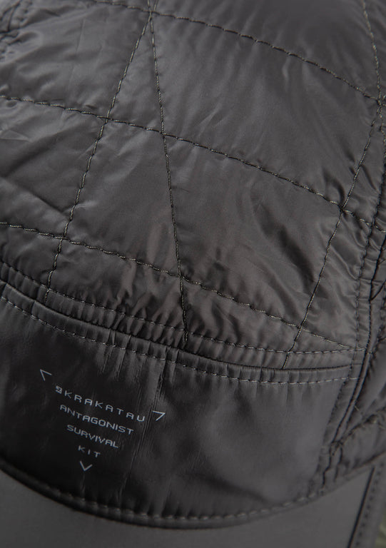 Стёганая кепка с водотталкивающим покрытием полностью сделана из переработанных материалов.