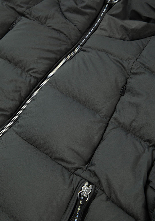 Функциональный утеплитель из белого утиного пуха с высоким соотношением пуха и пера 90/10, с добавлением современного волокна Repreve® из переработанных пластиковых бутылок. Этот экологичный утеплитель не только способствует сокращению пластиковых отходов, но также повышает долговечность и влагоотводящие свойства куртки. Пуховые кластеры изготовлены с соблюдением этических норм и обеспечивают естественный лёгкий барьер от холода, эффективно удерживая тепло, не добавляя ненужного объема одежде. Упругость 670 FP.