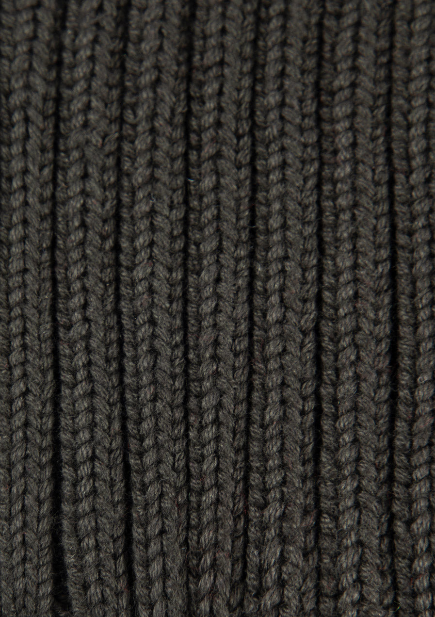 Вязаная хлопковая шапка с крупной ребристой фактурой. Может носиться с отворотом или без.
