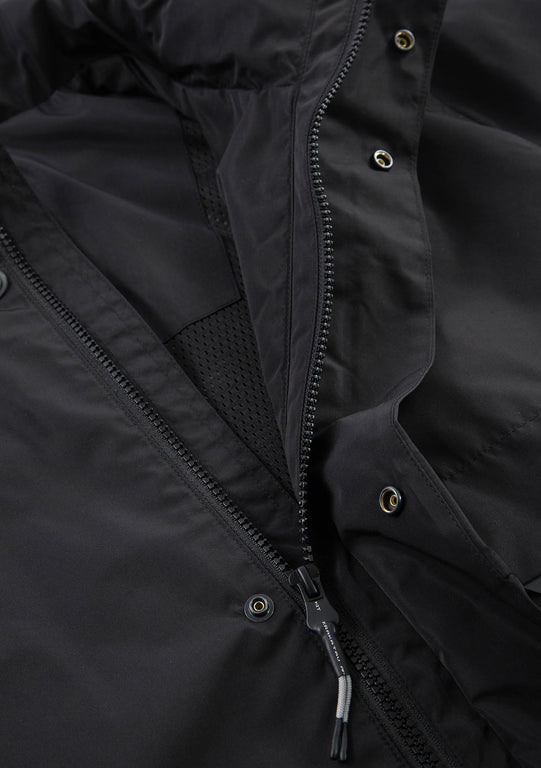 Лёгкая плотная ткань с матовой поверхностью. Ламинирована водостойкой дышащей мембраной. Обработана стойкой водоотталкивающей пропиткой из экологичных ингредиентов без содержания PFC. 100 % полиэстер.