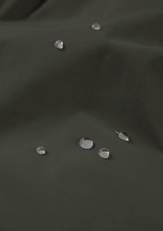 Прочная лёгкая нейлоновая ткань со слегка мятой текстурой, подчёркивающей визуальную глубину материала. Ламинирована водостойкой дышащей мембраной. С внешней стороны обработана антистатиком и покрыта стойким водоотталкивающим составом из экологичных ингредиентов без содержания PFC. Не загрязняет окружающую среду и безвредно для организма человека. Куртка из этой ткани быстро сохнет и неприхотлива в уходе. 100% нейлон.