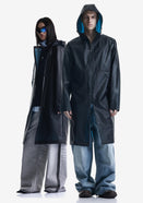 Дождевик-трансформер TETHYS из полупрозрачного плотного водонепроницаемого полиуретана с герметизированными швами. Оснащён водозащитными карманами и регулируемой длиной, позволяющей носить этот дождевик в качестве длинного плаща и короткой куртки.