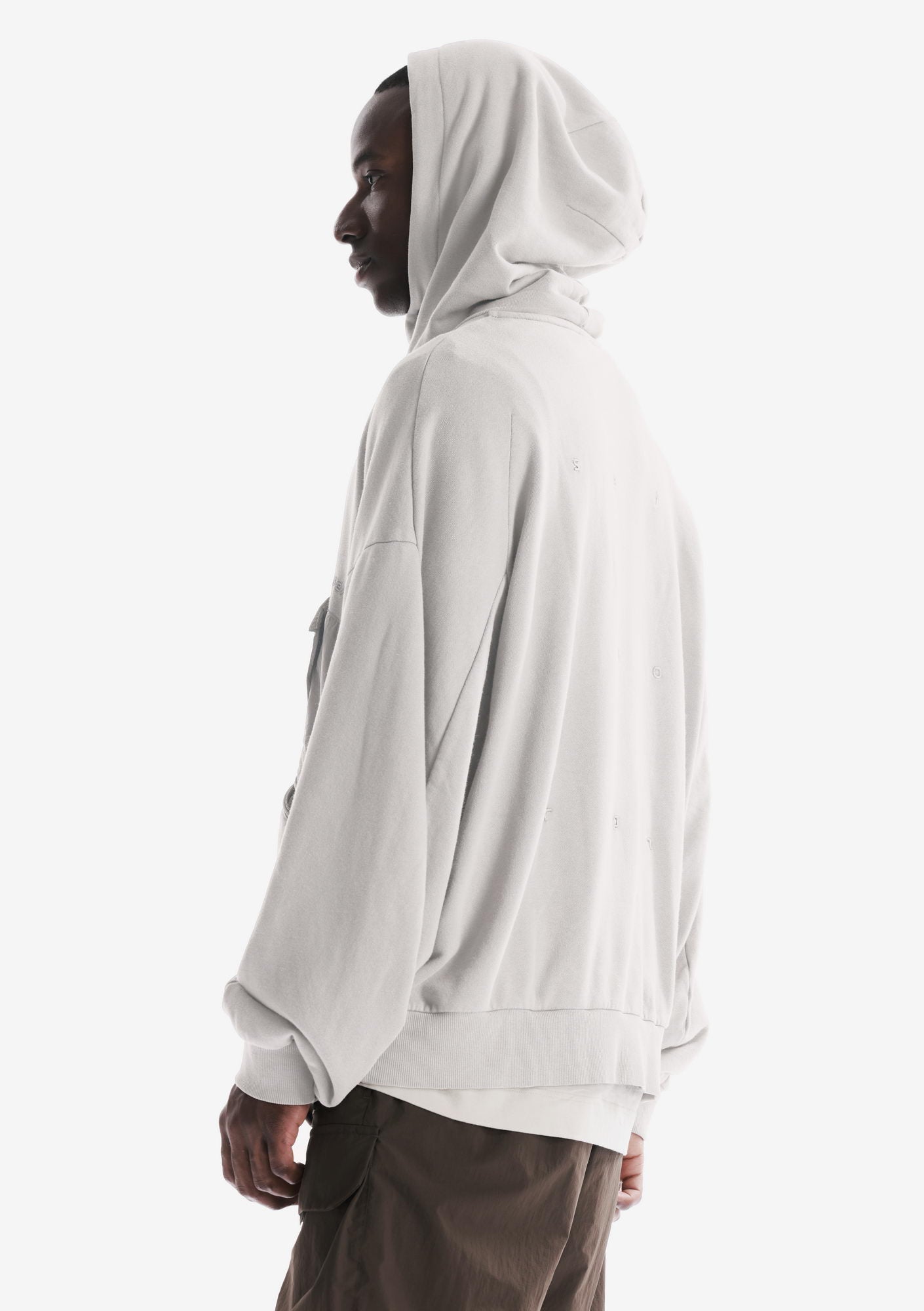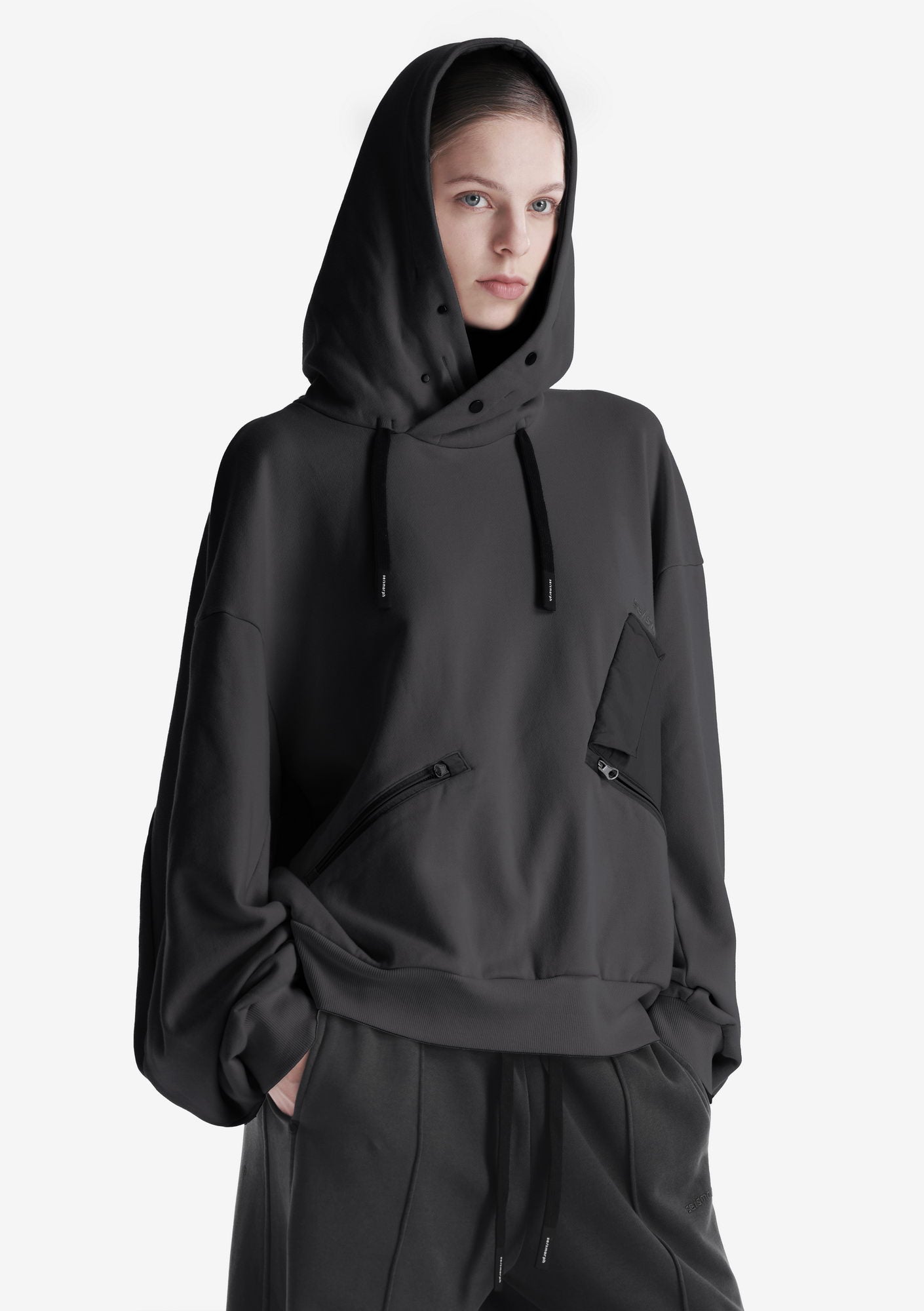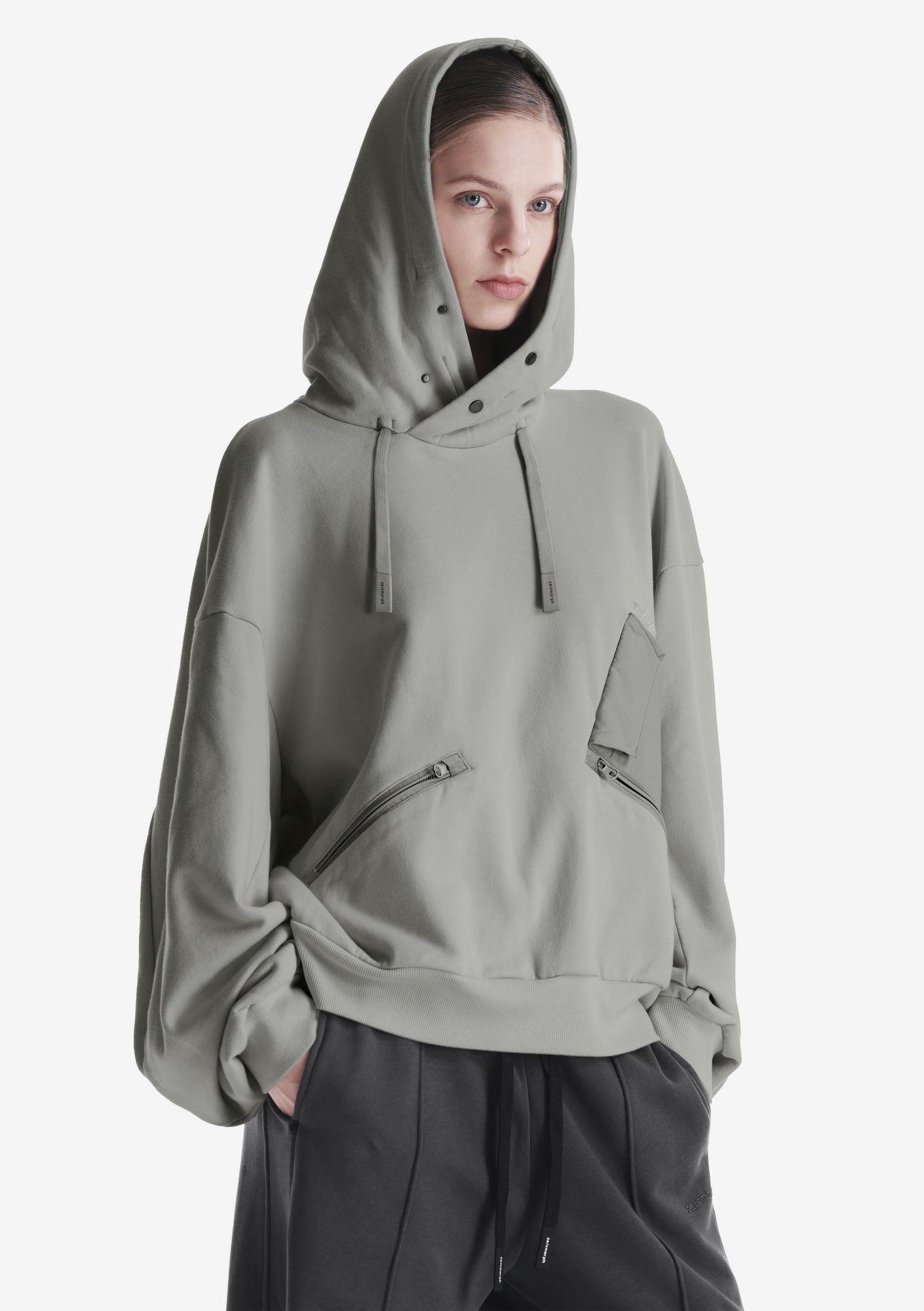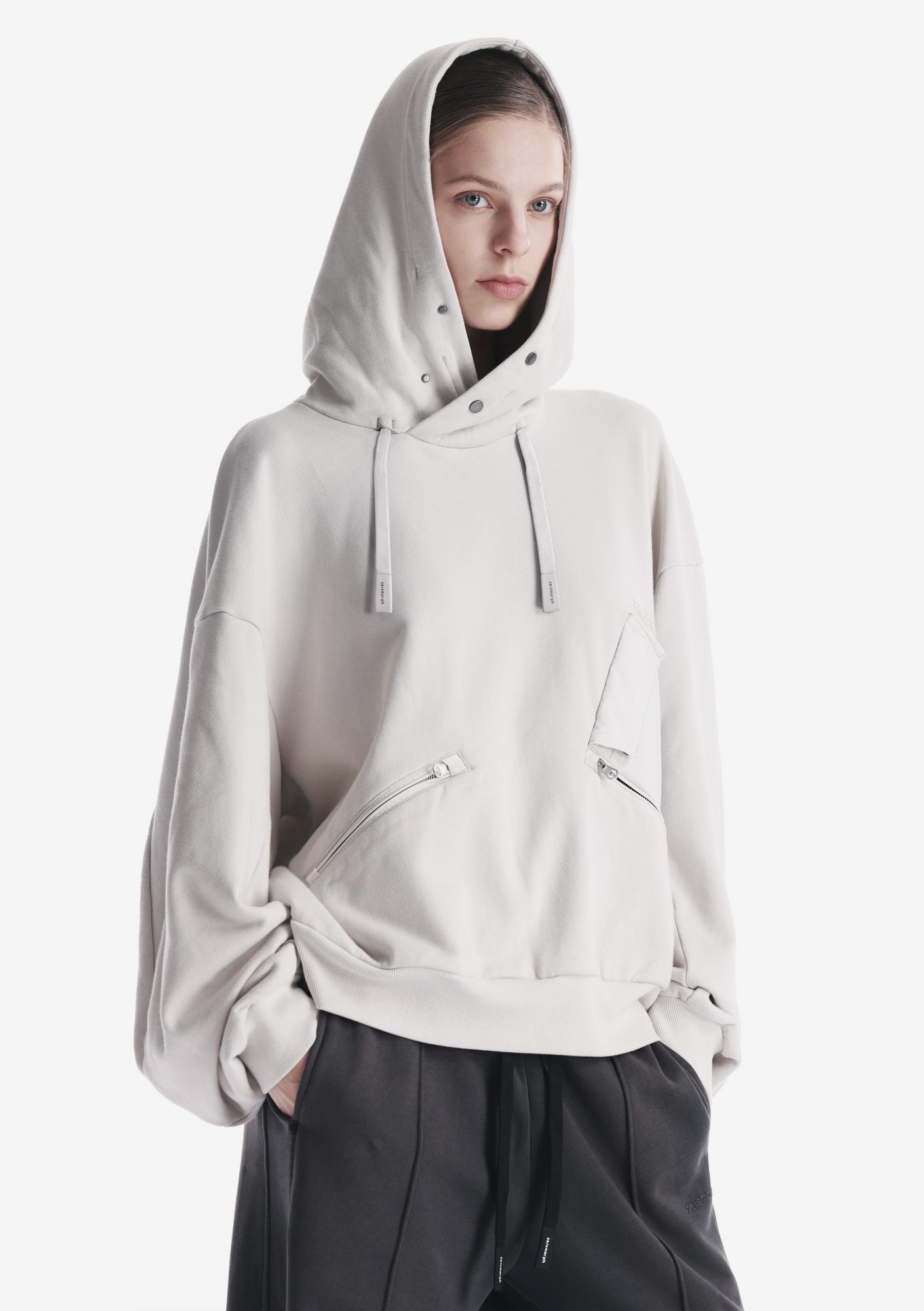 Худи FRISSON из плотного хлопкового футера с петлевой изнанкой. Двухслойный капюшон, нагрудный карман и карманы для рук на молнии обеспечивают функциональность, а рибовые манжеты и низ поддерживают стабильную посадку.