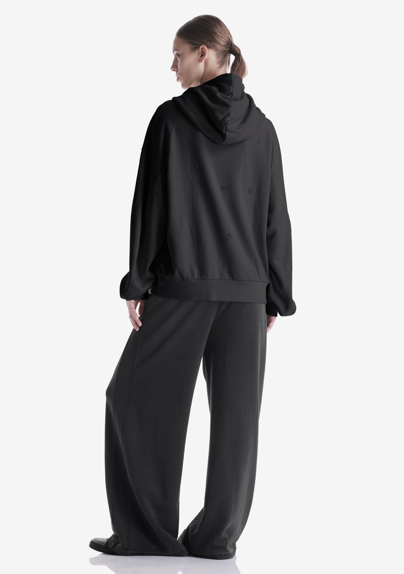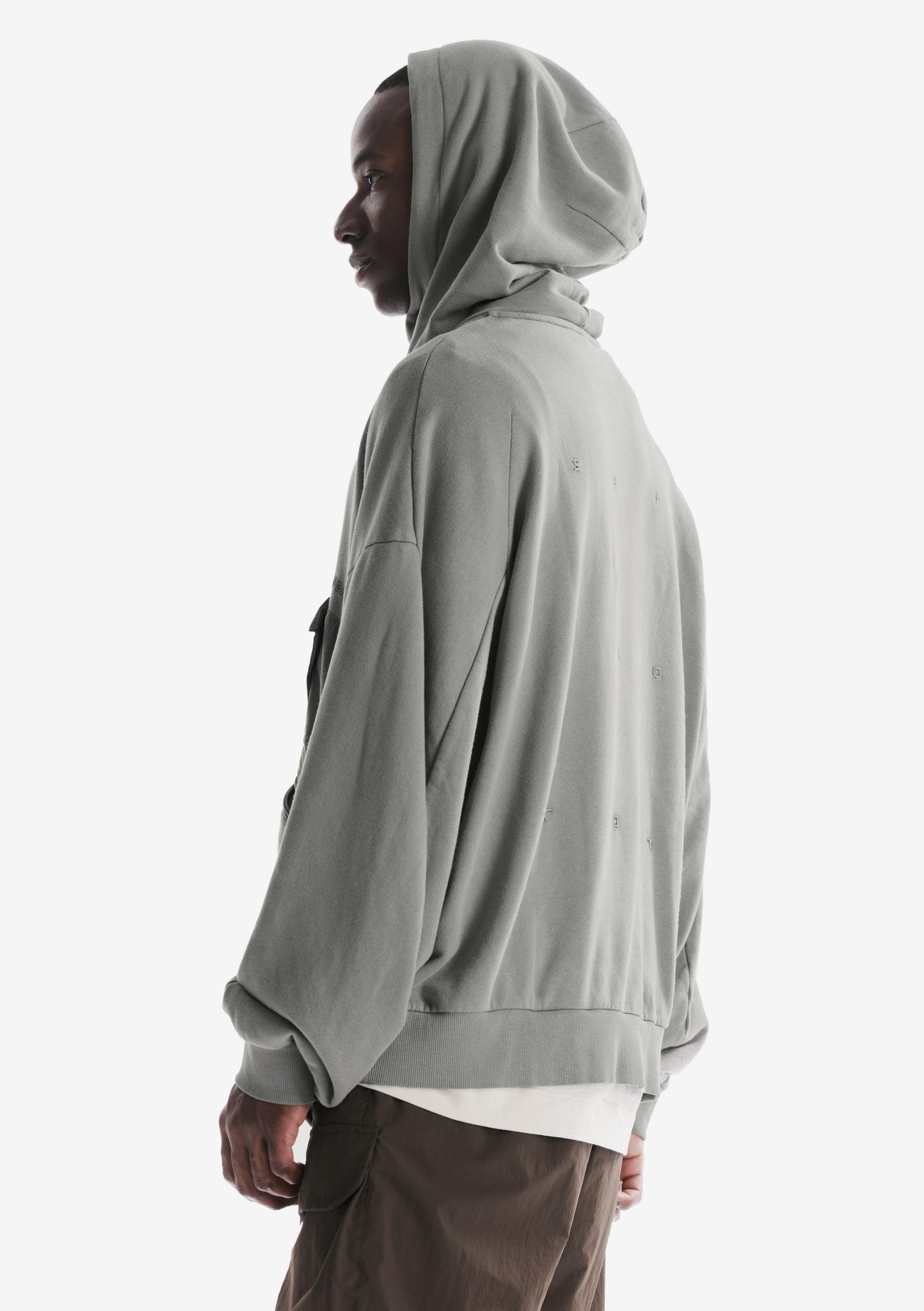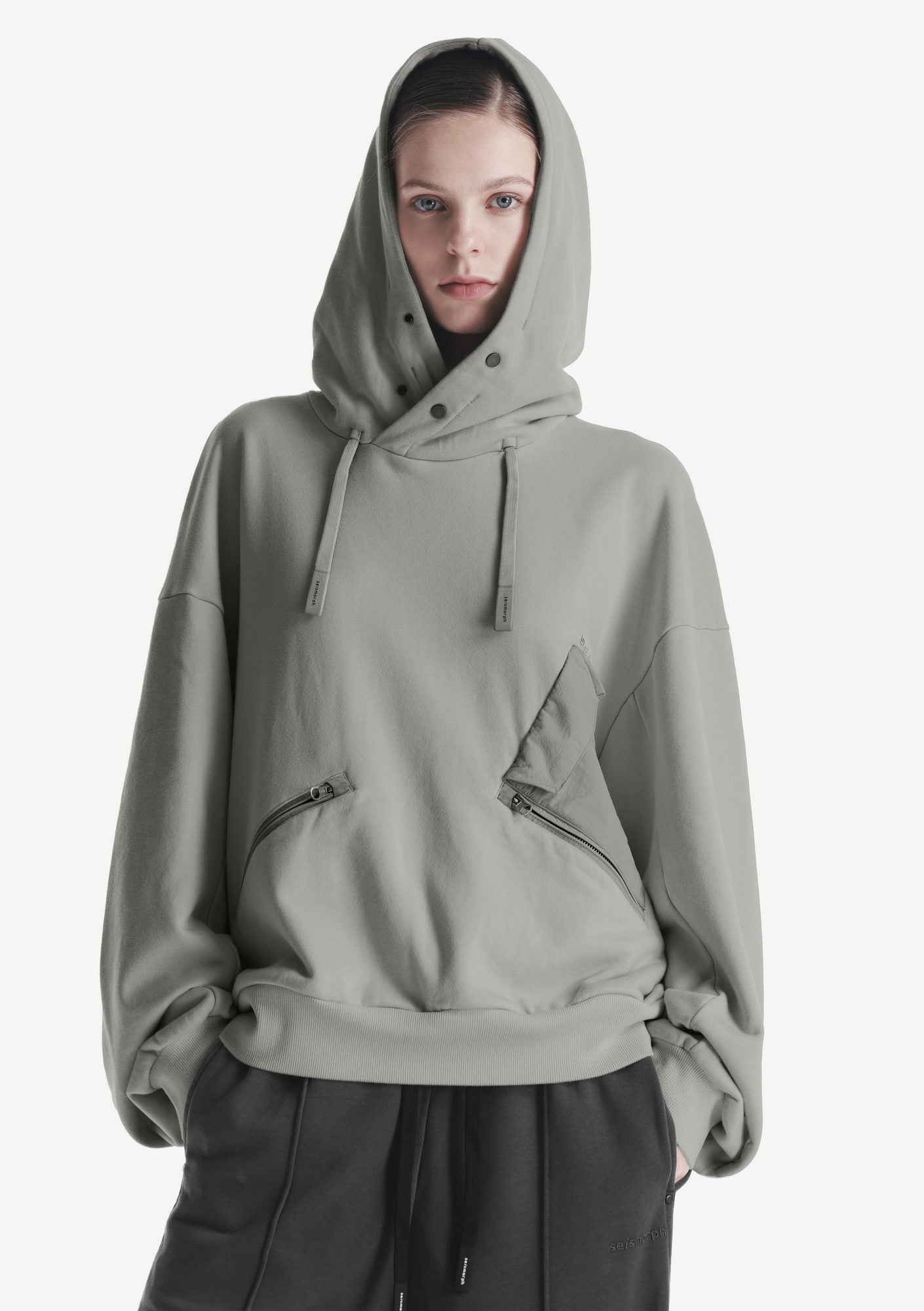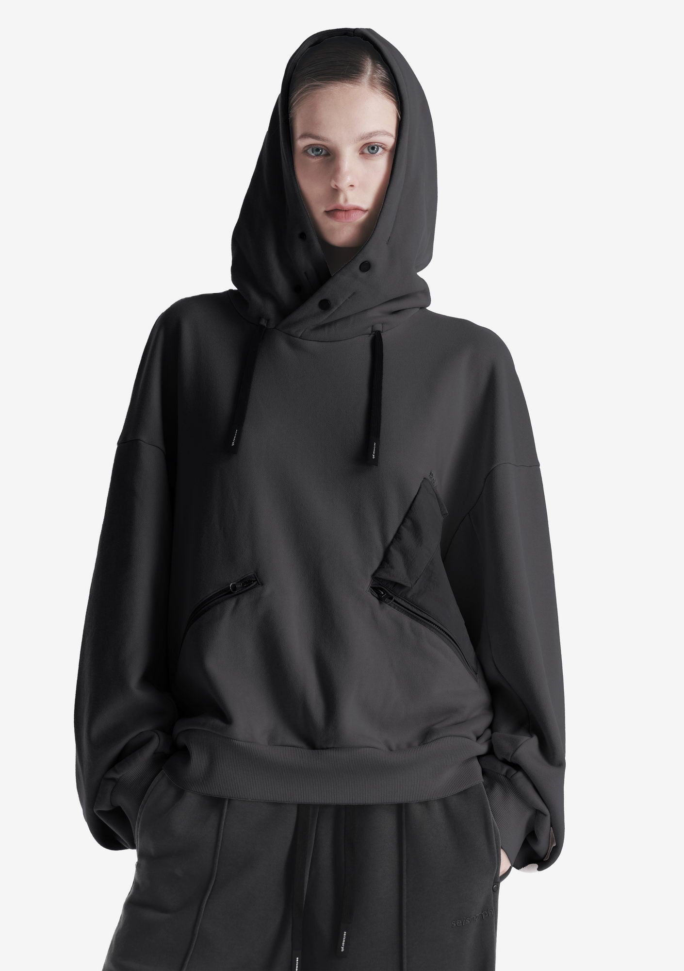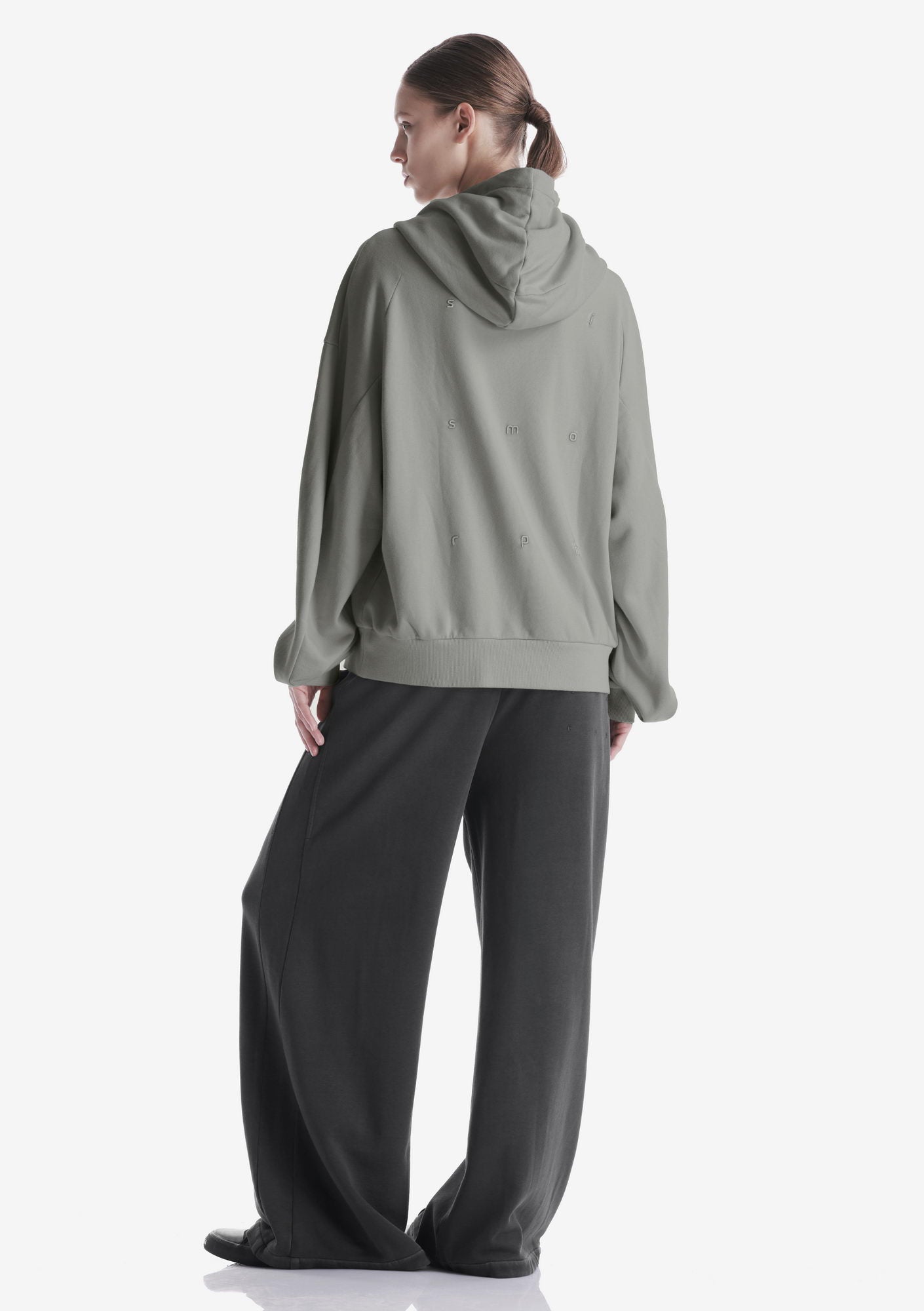 Худи FRISSON из плотного хлопкового футера с петлевой изнанкой. Двухслойный капюшон, нагрудный карман и карманы для рук на молнии обеспечивают функциональность, а рибовые манжеты и низ поддерживают стабильную посадку.