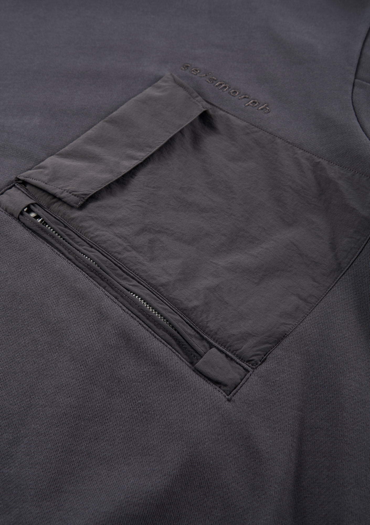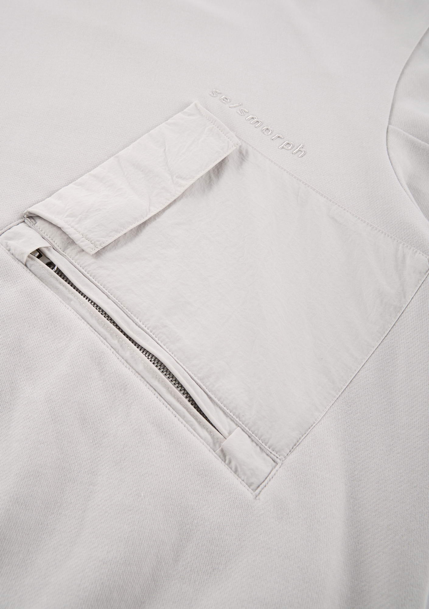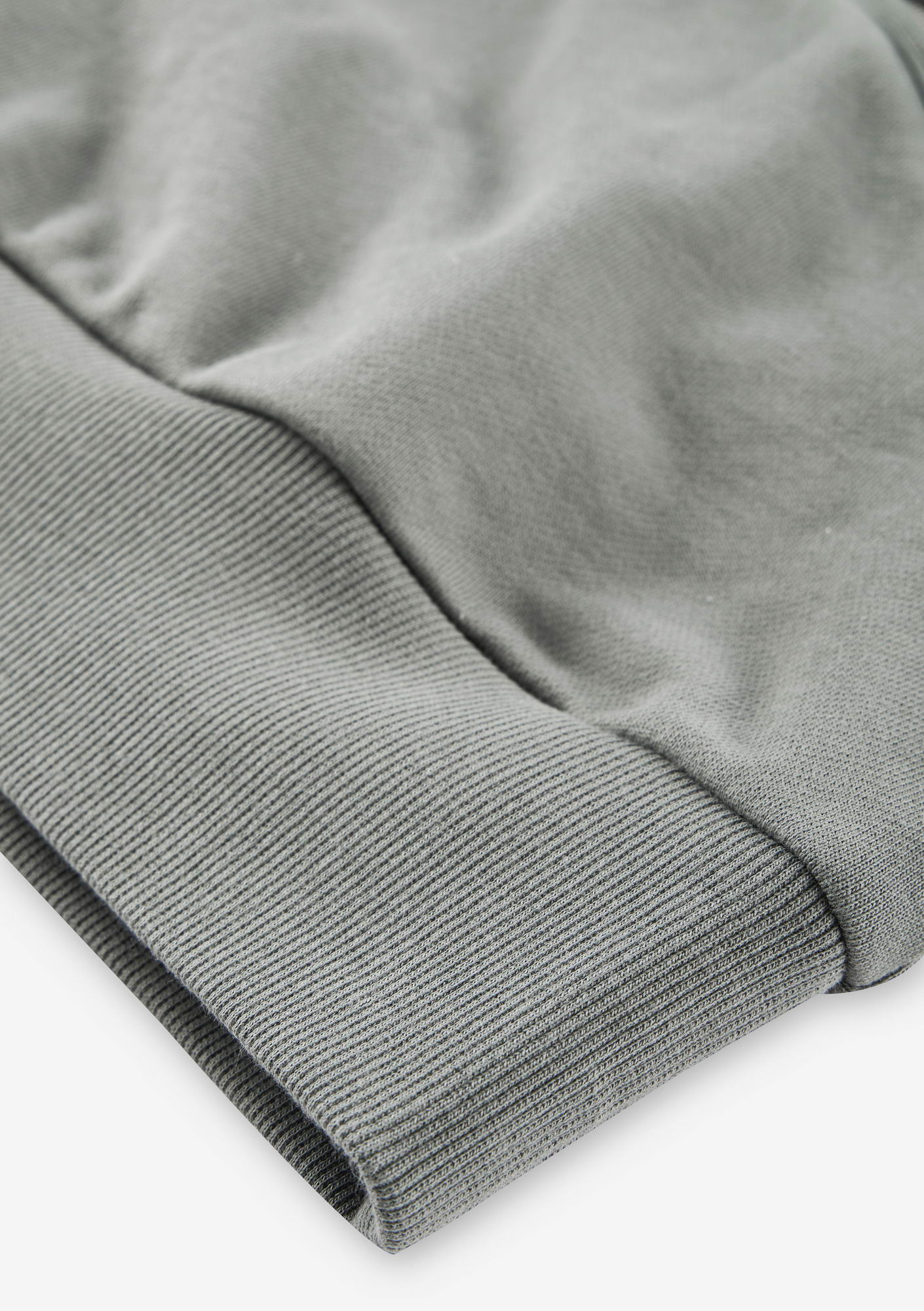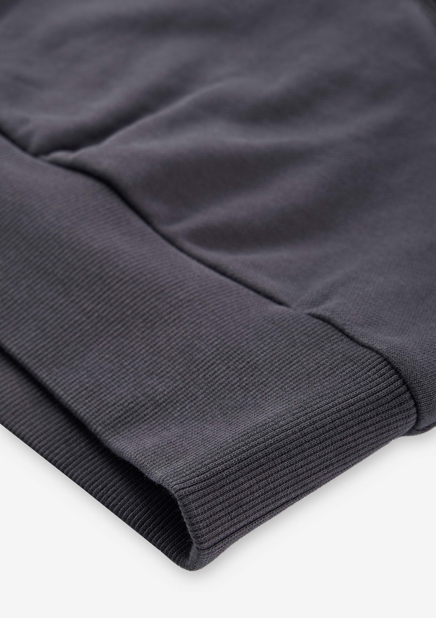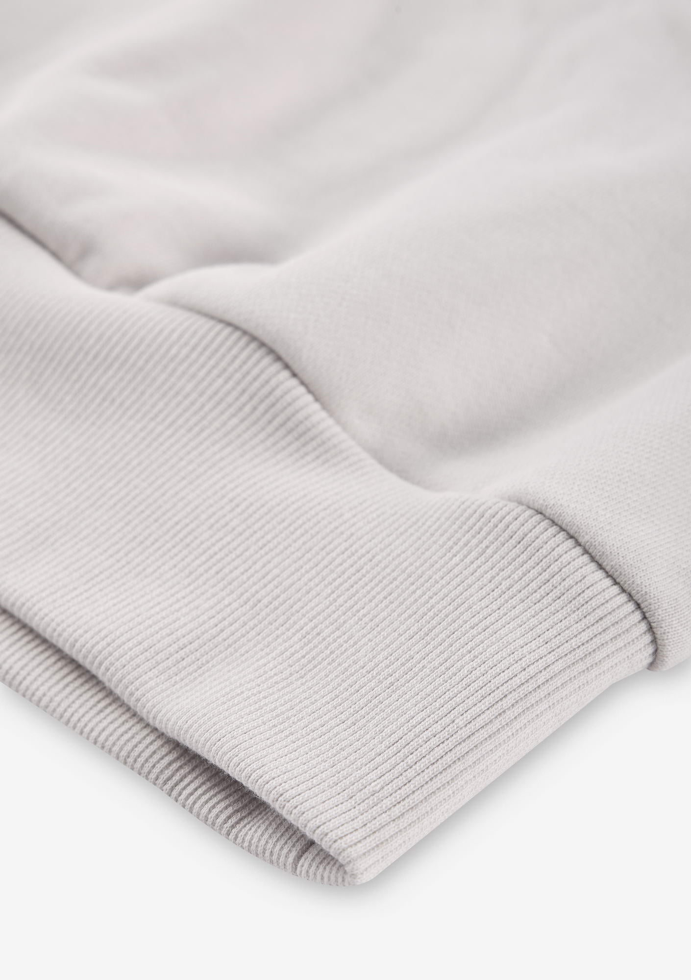 Основная ткань из трикотажного футера с плотностью 360 г/м². Однородная структура с петельчатой изнаночной стороной. 100% хлопок.
