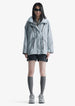 Полевая куртка LUVOIR для летнего бриза из полупрозрачной ткани с мятой структорой, оснащена капюшоном, скрытым в высоком воротнике, и контрастными металлическими молниями.