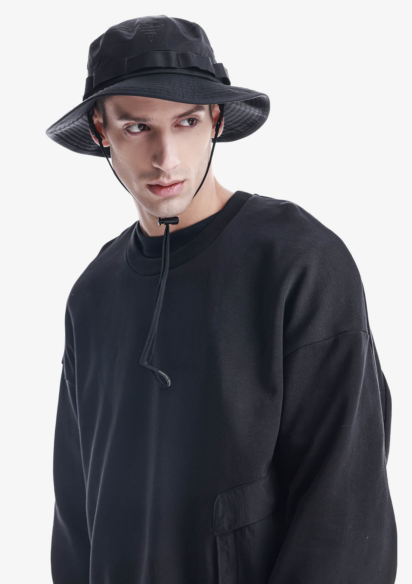 Панама с широкими полями сделана из натурального износостойкого хлопка. Дополнена затяжником для регулировки посадки.