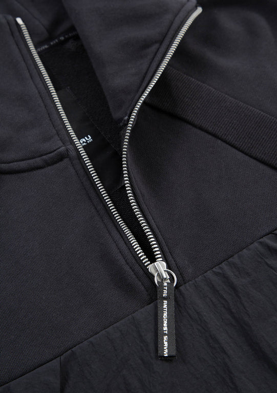 Кроп-худи на молнии FRISSON объединяет комфорт джерси и эстетику деконструкции.