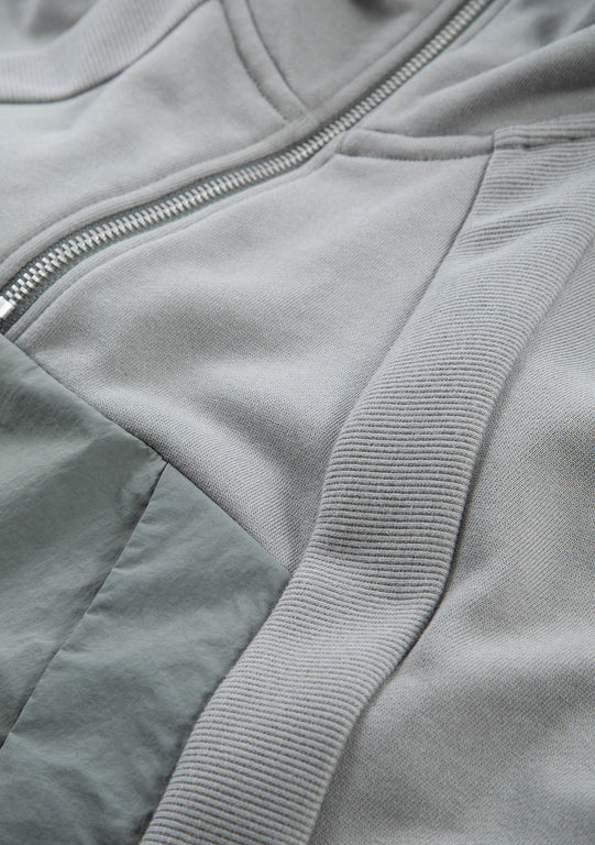 Кроп-худи на молнии FRISSON объединяет комфорт джерси и эстетику деконструкции.