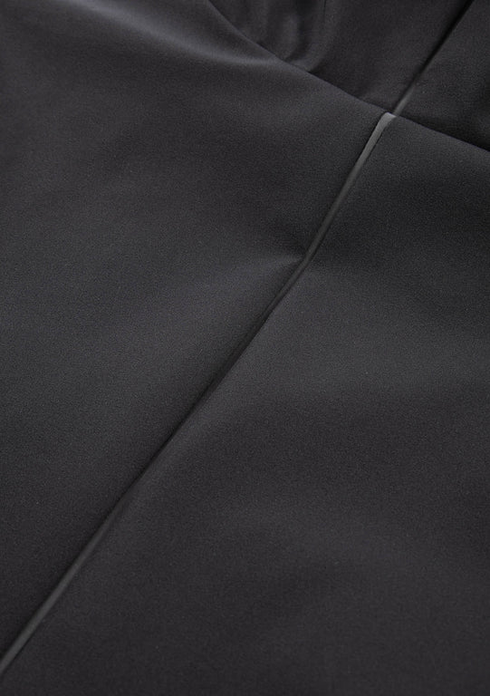 Износостойкий эластичный нейлон с матовой поверхностью устойчив к разрывам и адаптируется к движениям. Трёхслойная конструкция с мембранным покрытием TPU и водоотталкивающей пропиткой без фторуглеродов (PFC-free DWR) защищает от ветра и влаги. 85 % нейлон, 15 % спандекс.