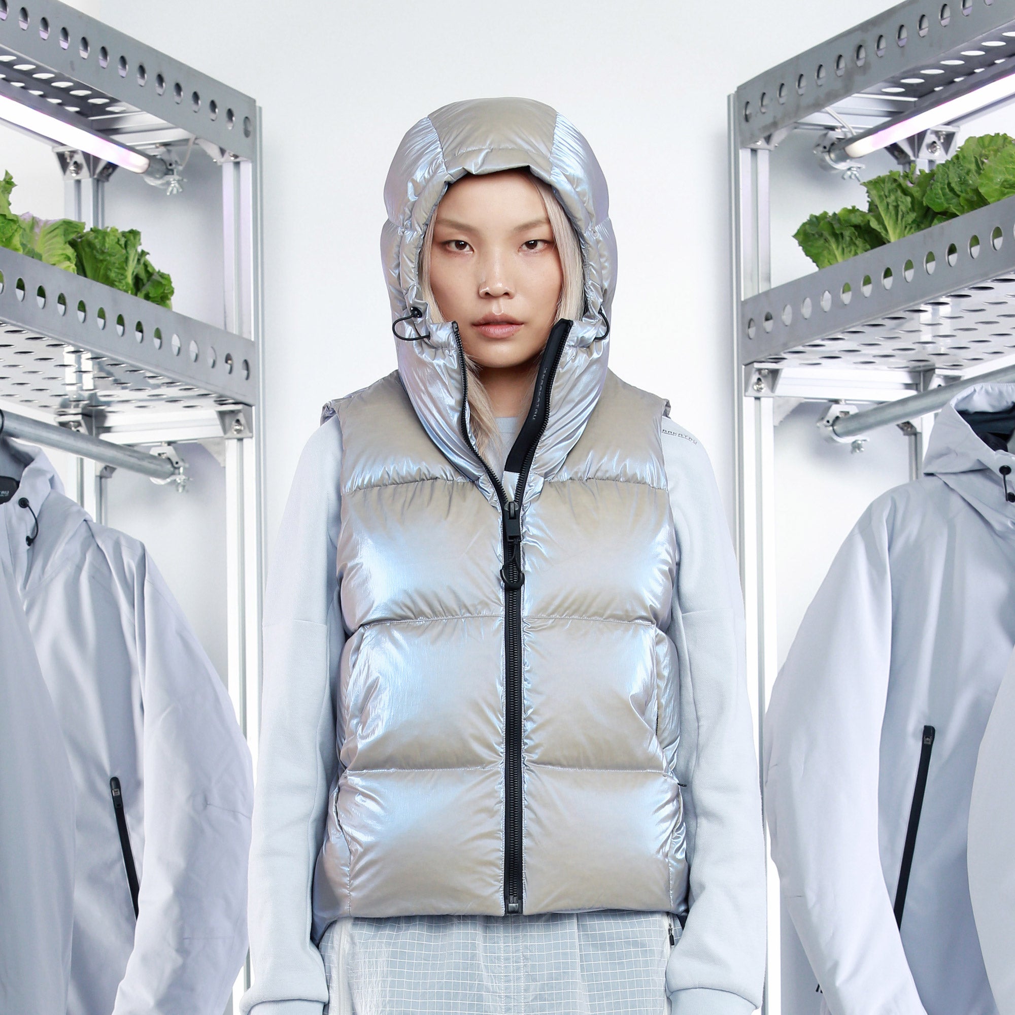 Для пуховиков мы используем пух из-за его уникальных термоизоляционных свойств, но смешиваем его с переработанным полиэстером, чтобы сократить потребление пуха на 50 %, при этом сохранив упругость на высоком уровне 670 FP.