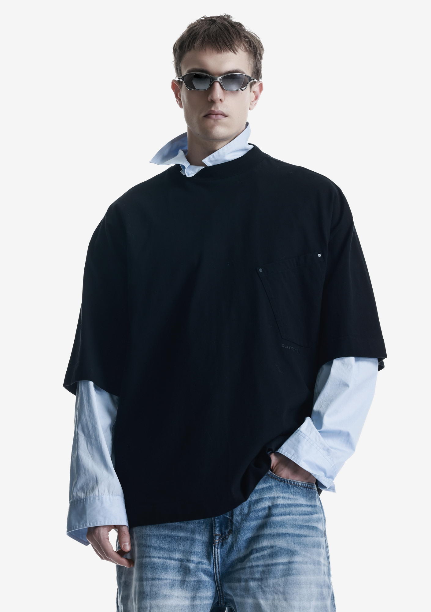 Оверсайз футболка с наклонным нагрудным карманом из мягкого хлопкового джерси с начёсом и ровной поверхностью, обеспечивающей комфорт в носке. Горловина из рибаны поддерживает стабильную посадку, а вышивка спереди и сзади добавляет графичный акцент.