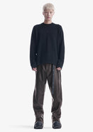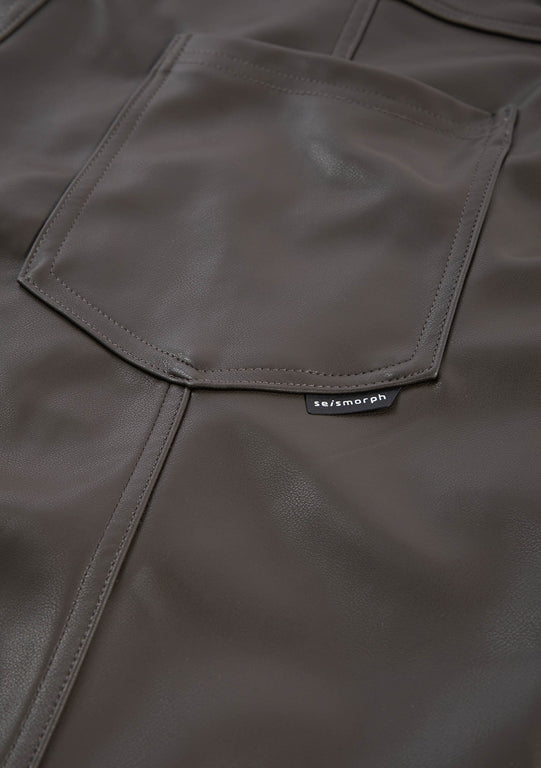 Брюки VINT из матовой экокожи с воздухопроницаемой ламинацией. Материал не бликует, держит форму и защищает от влаги. Боковая молния открывает скрытый карман и работает как вентиляция. Петли для карабинов и удобные карманы для рук работают без внешнего перегруза.