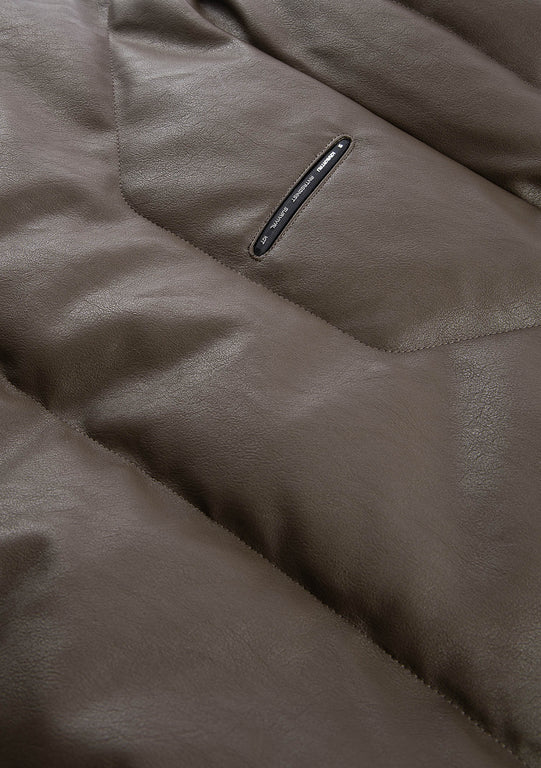 Пуффер NARWARU из матовой экокожи с мягкой фактурой и воздухопроницаемой ламинацией. Материал не бликует, не боится влаги и держит форму. Высокий воротник, съёмная внутренняя юбка, манжеты и низ с эластичной отделкой создают плотную посадку и защиту от холода. Карманы на кнопках с быстрым доступом . Утеплитель сохраняет тепло даже во влажных условиях — комфорт без компромиссов.