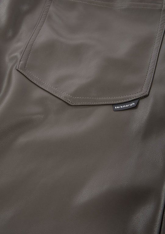 Широкие брюки VANT из матовой экокожи с мягкой фактурой и воздухопроницаемой ламинацией. Материал не бликует, держит форму и защищает от влаги. Затяжники по низу и мягкий пояс — подстраиваются под фигуру и ритм дня.