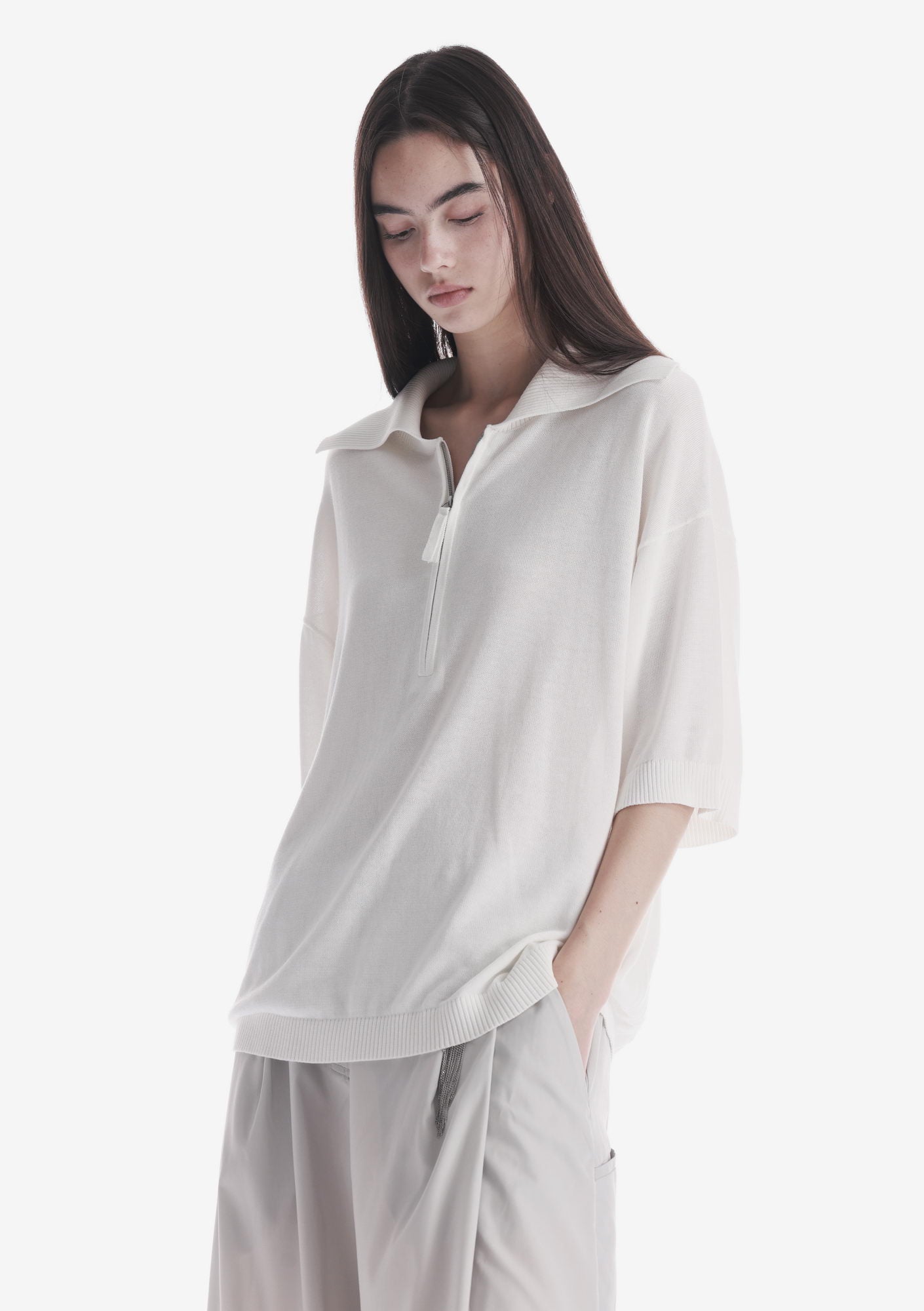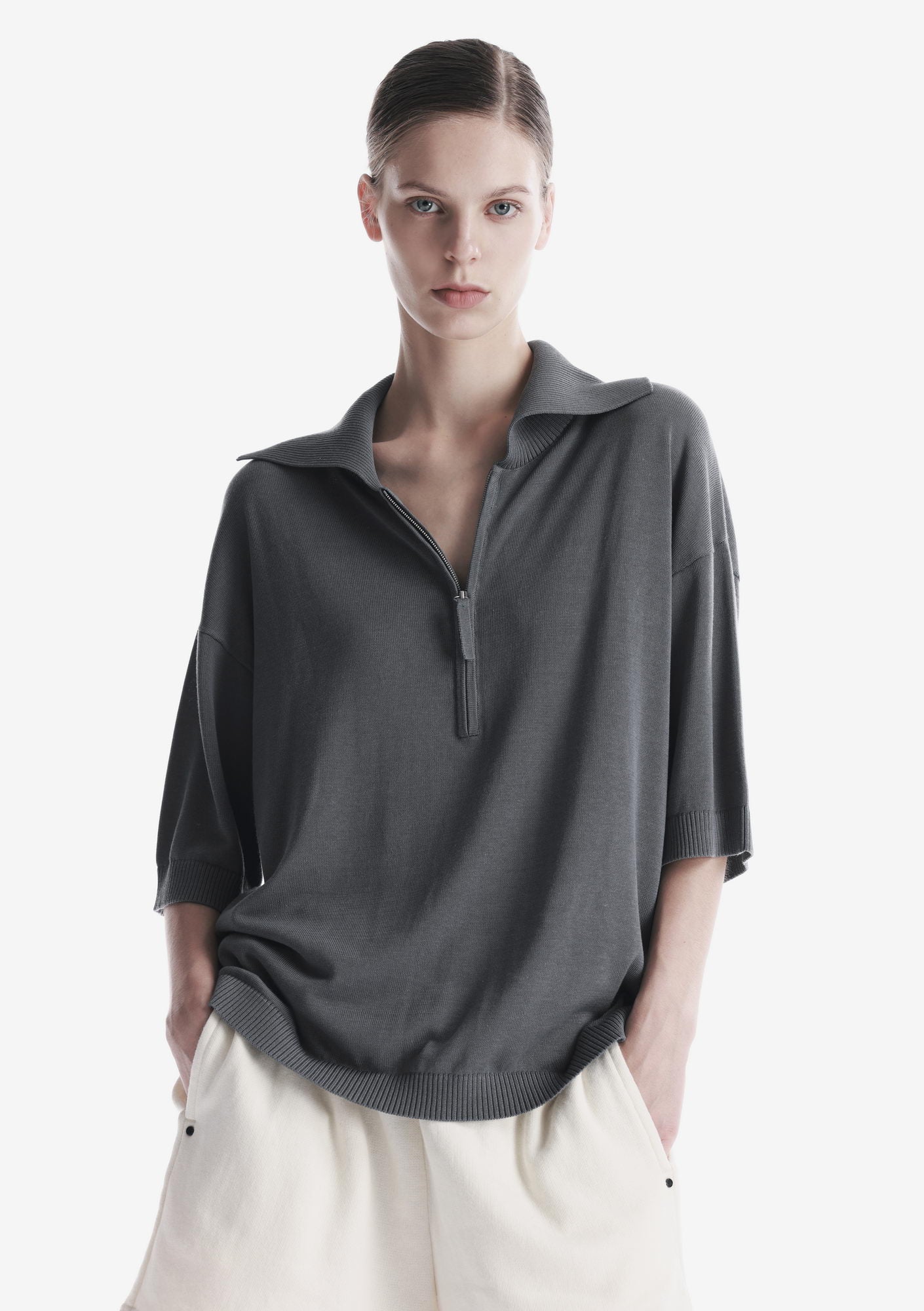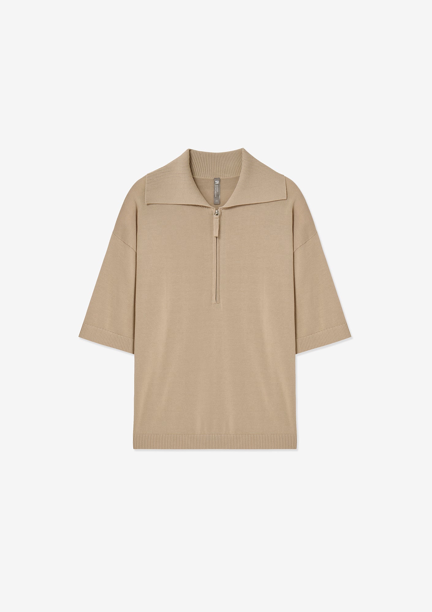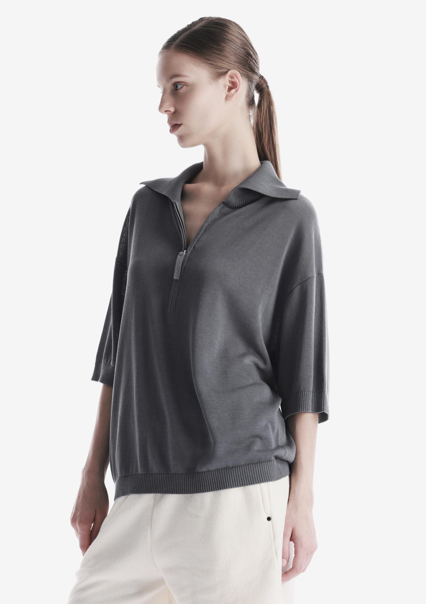 Поло THETA свободного силуэта из смесовой пряжи TENCEL™, хлопка и шёлка. Материал мягкий, дышащий и эффективно отводит влагу, а отложной воротник и короткая молния формируют чистый силуэт.