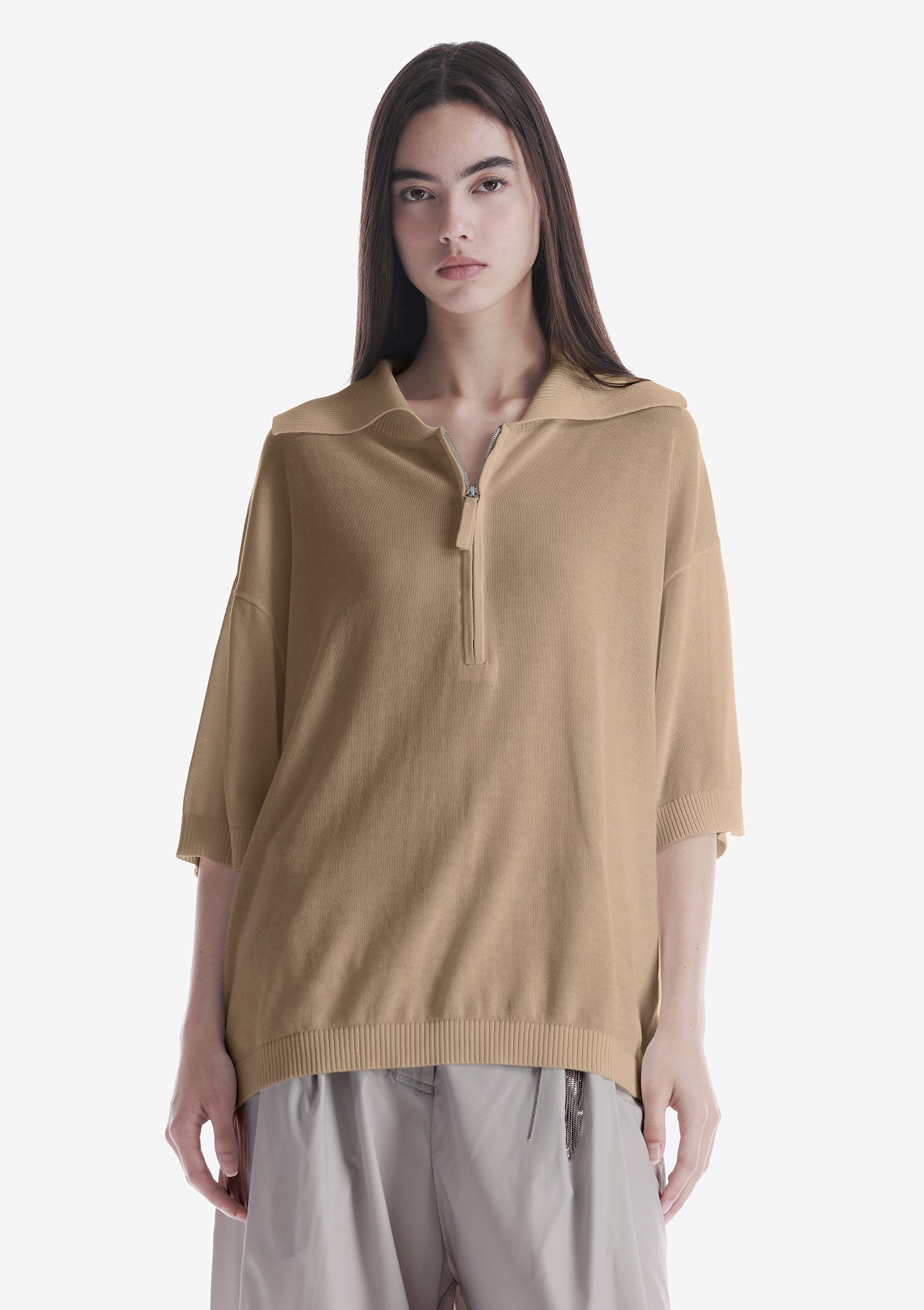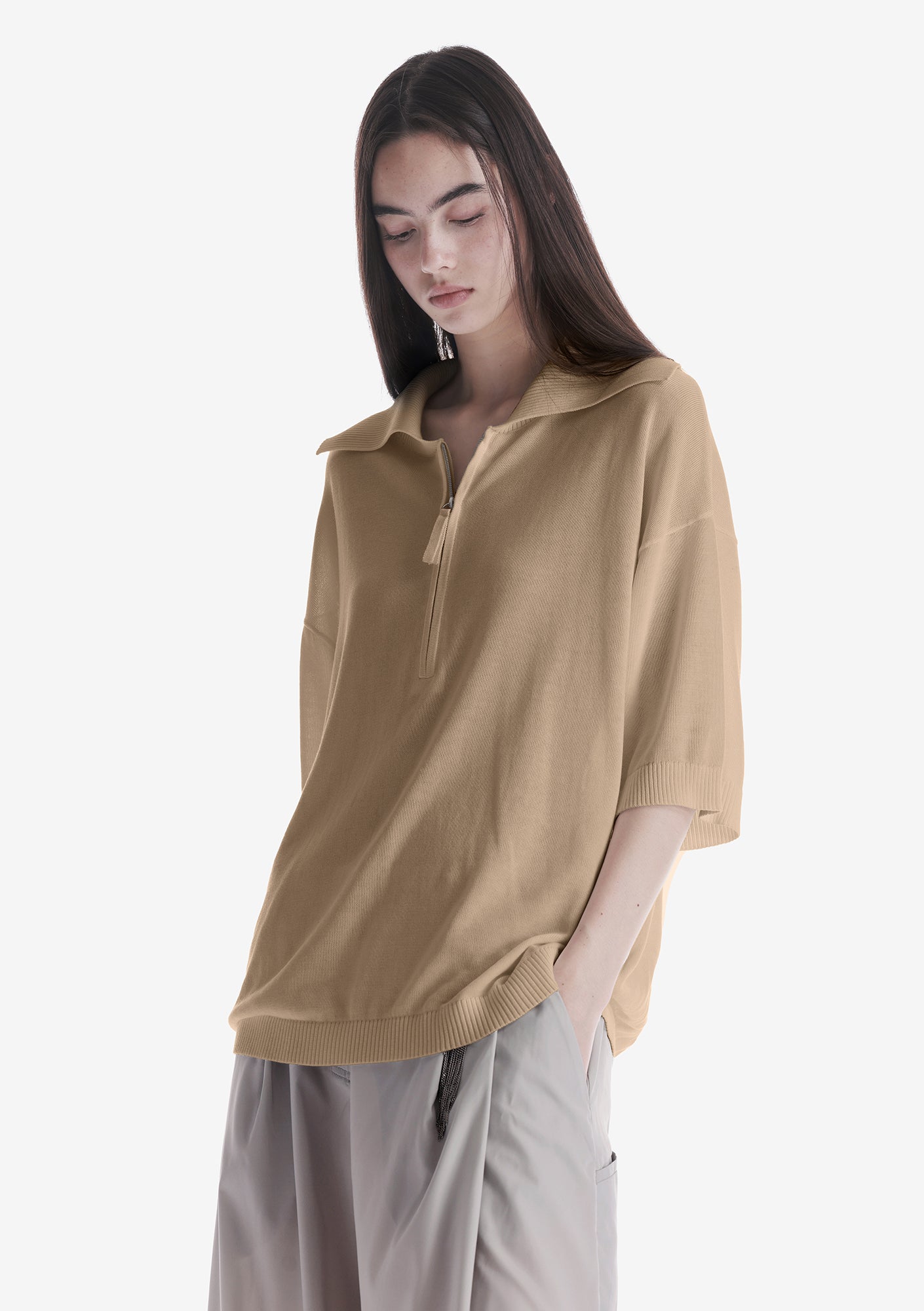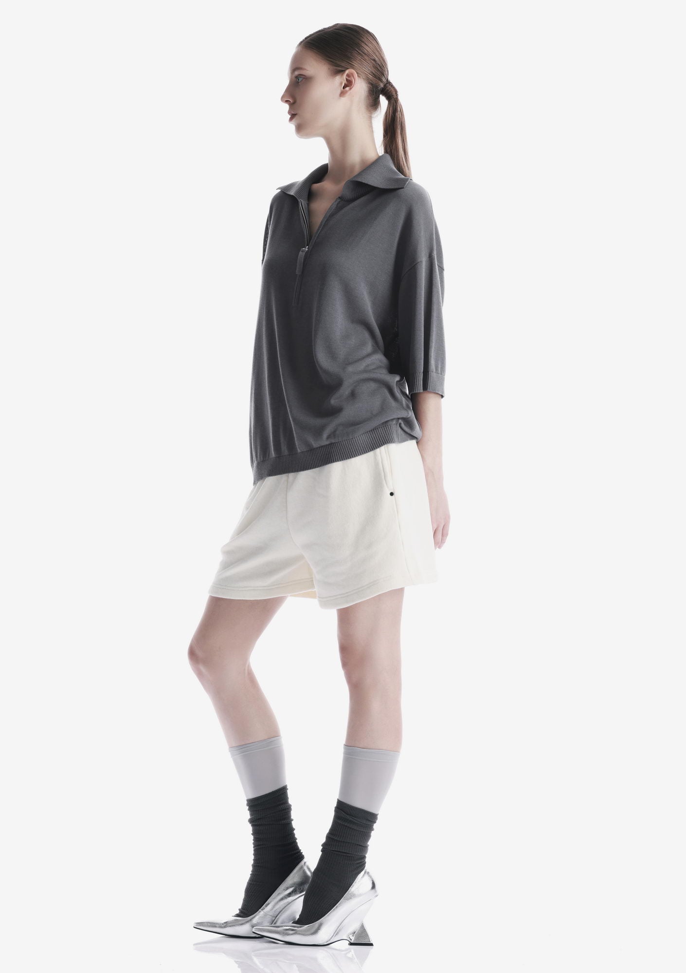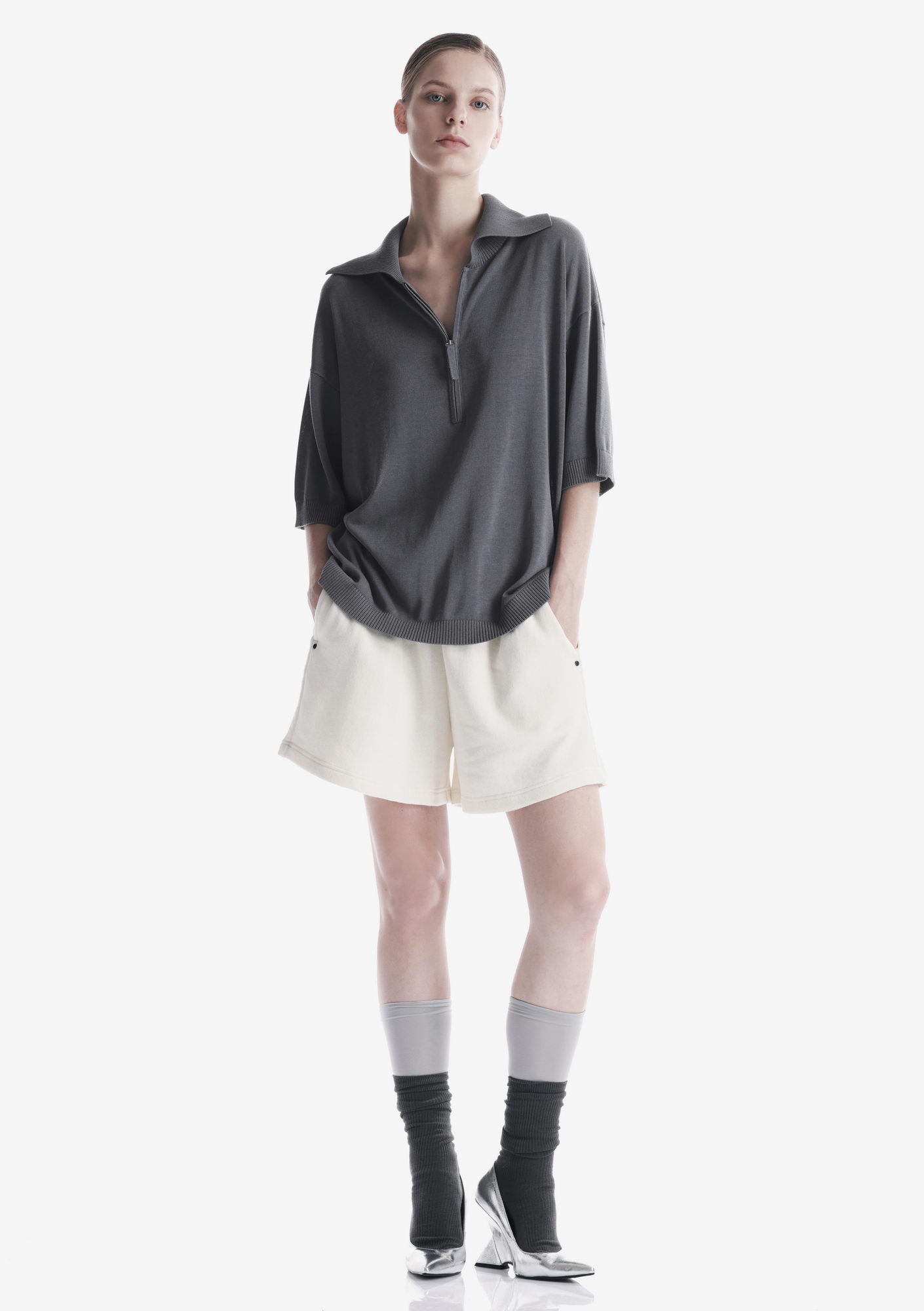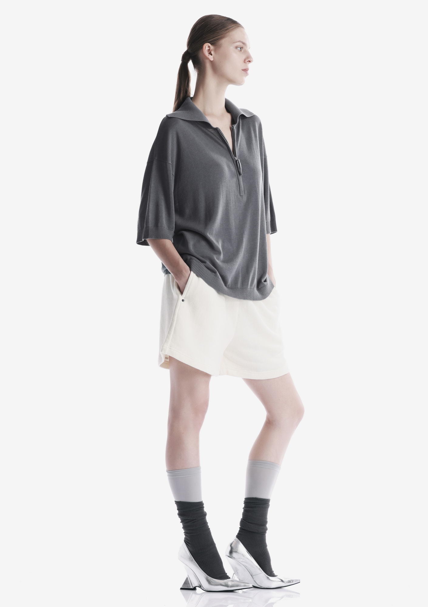 Поло THETA свободного силуэта из смесовой пряжи TENCEL™, хлопка и шёлка. Материал мягкий, дышащий и эффективно отводит влагу, а отложной воротник и короткая молния формируют чистый силуэт.
