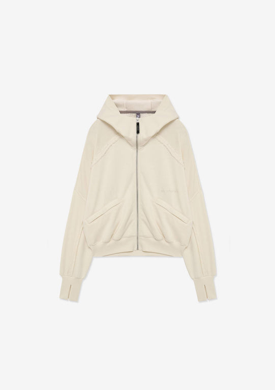 Худи MELLOW на молнии из плотного хлопкового футера с петлевой изнанкой. Рибовые манжеты и низ обеспечивают комфортную посадку, карманы с кнопками и капюшон добавляют базовую функциональность.