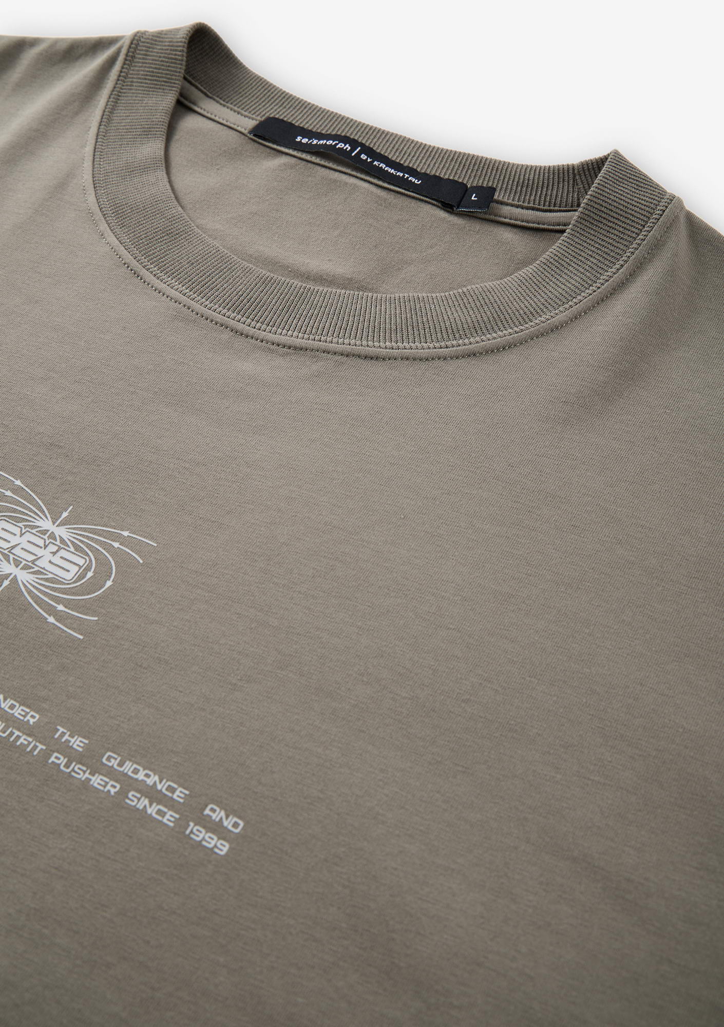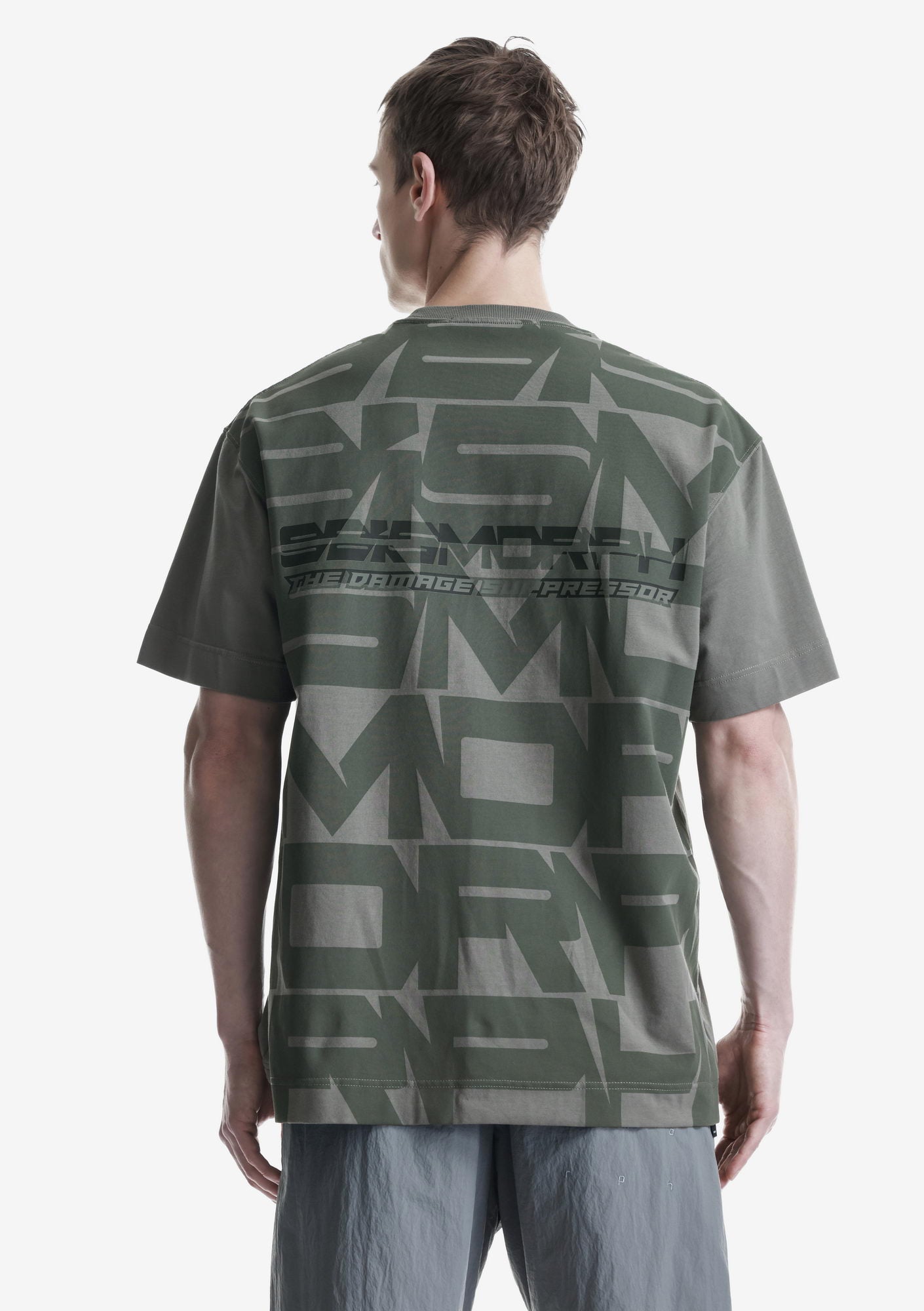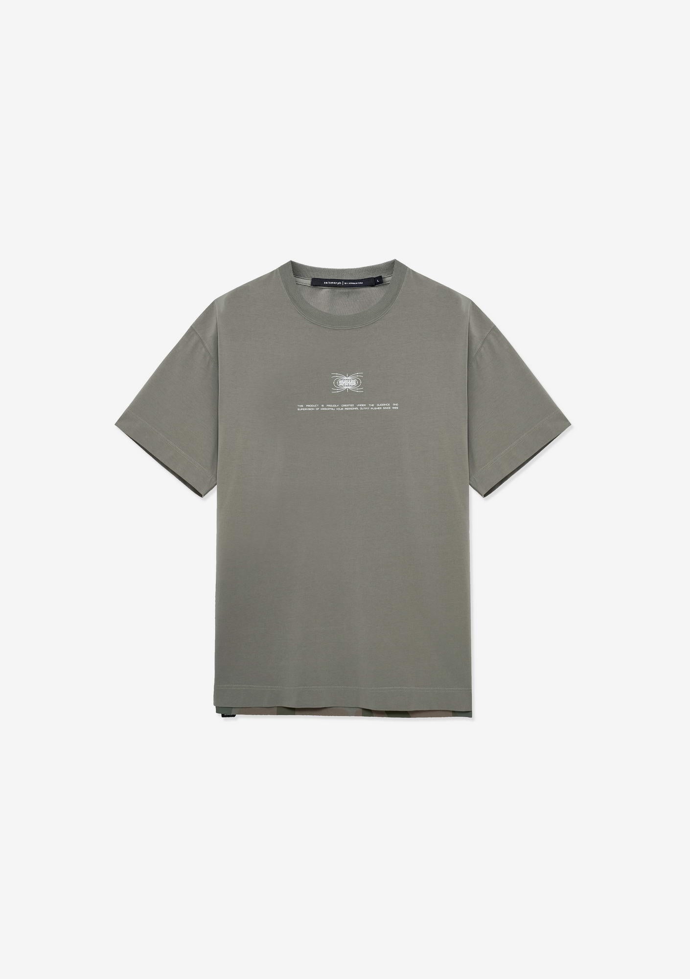 Футболка с многослойным принтом выполнена из хлопковой ткани с добавлением эластана, обеспечивающей мягкость и лёгкую эластичность. Эластичная горловина поддерживает форму, а принты спереди и сзади создают графичный акцент.