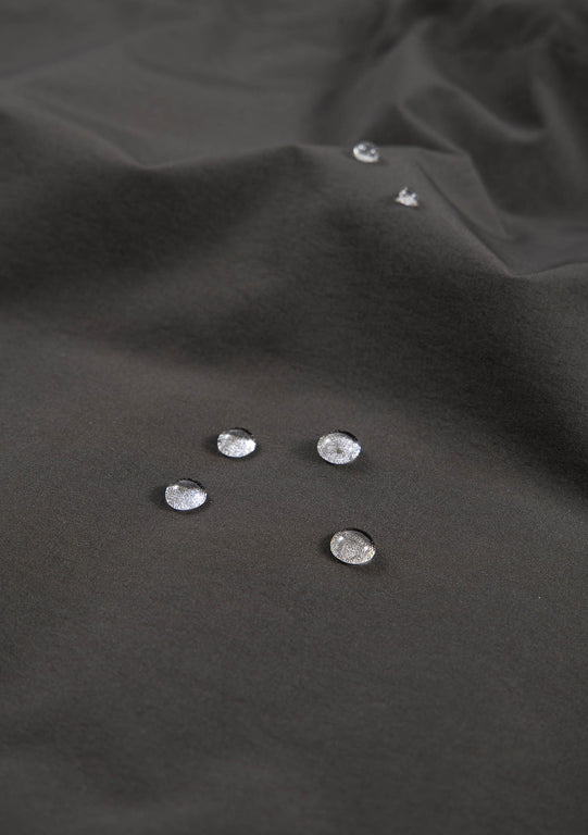 Функциональный нейлон с матовой поверхностью устойчив к износу и разрывам. Мембранное покрытие TPU и водоотталкивающая пропитка без фторуглеродов (PFC-free DWR) обеспечивают защиту от осадков. 100 % нейлон.