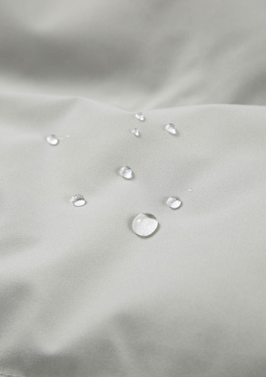 Плотная матовая ткань с высокими функциональными характеристиками. Ламинирована водостойкой паропроницаемой мембраной. Покрыта стойким водоотталкивающим составом из экологичных ингредиентов без содержания PFC — не загрязняет окружающую среду и безвреден для организма человека. 85 % нейлон, 15 % спандекс.