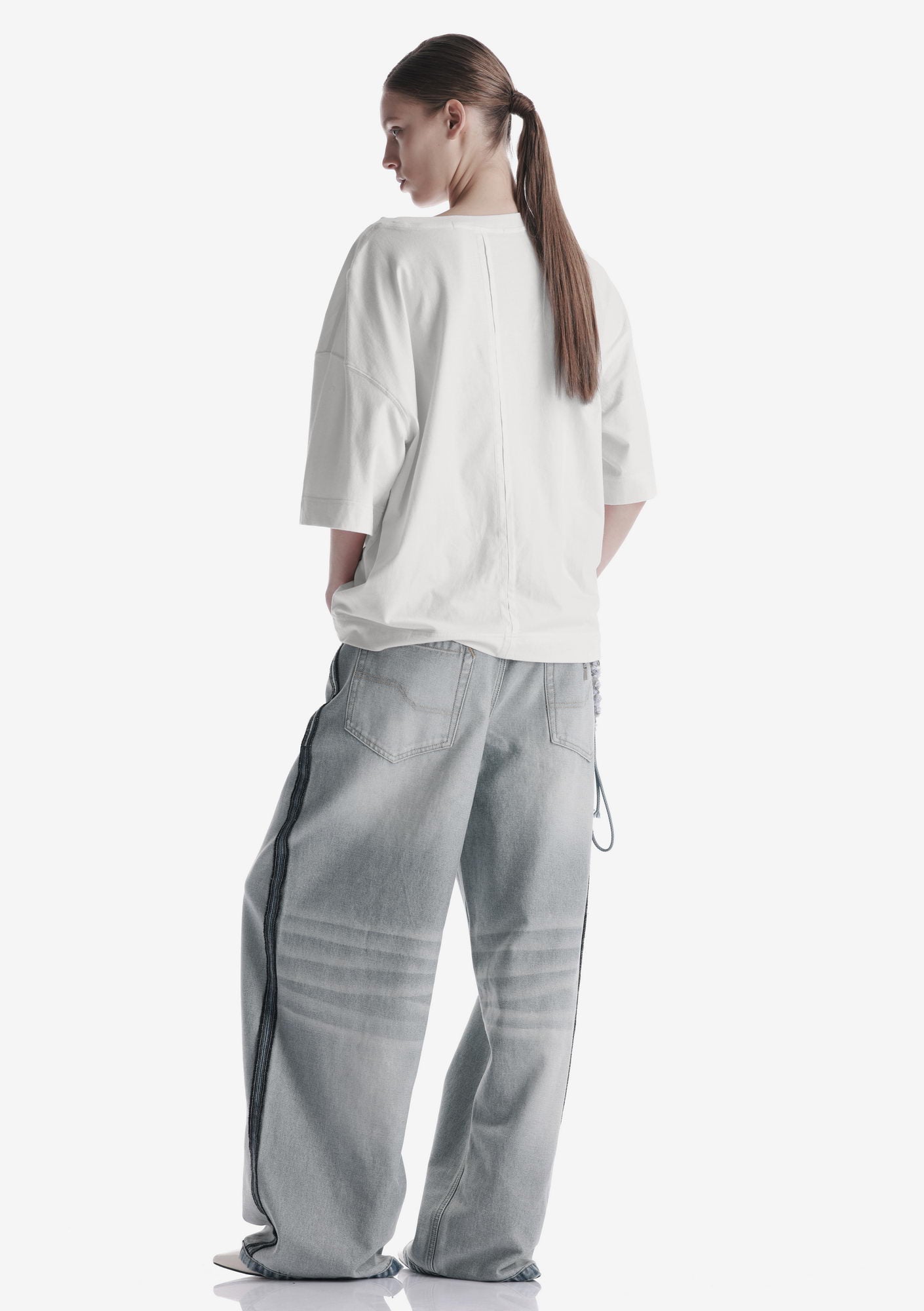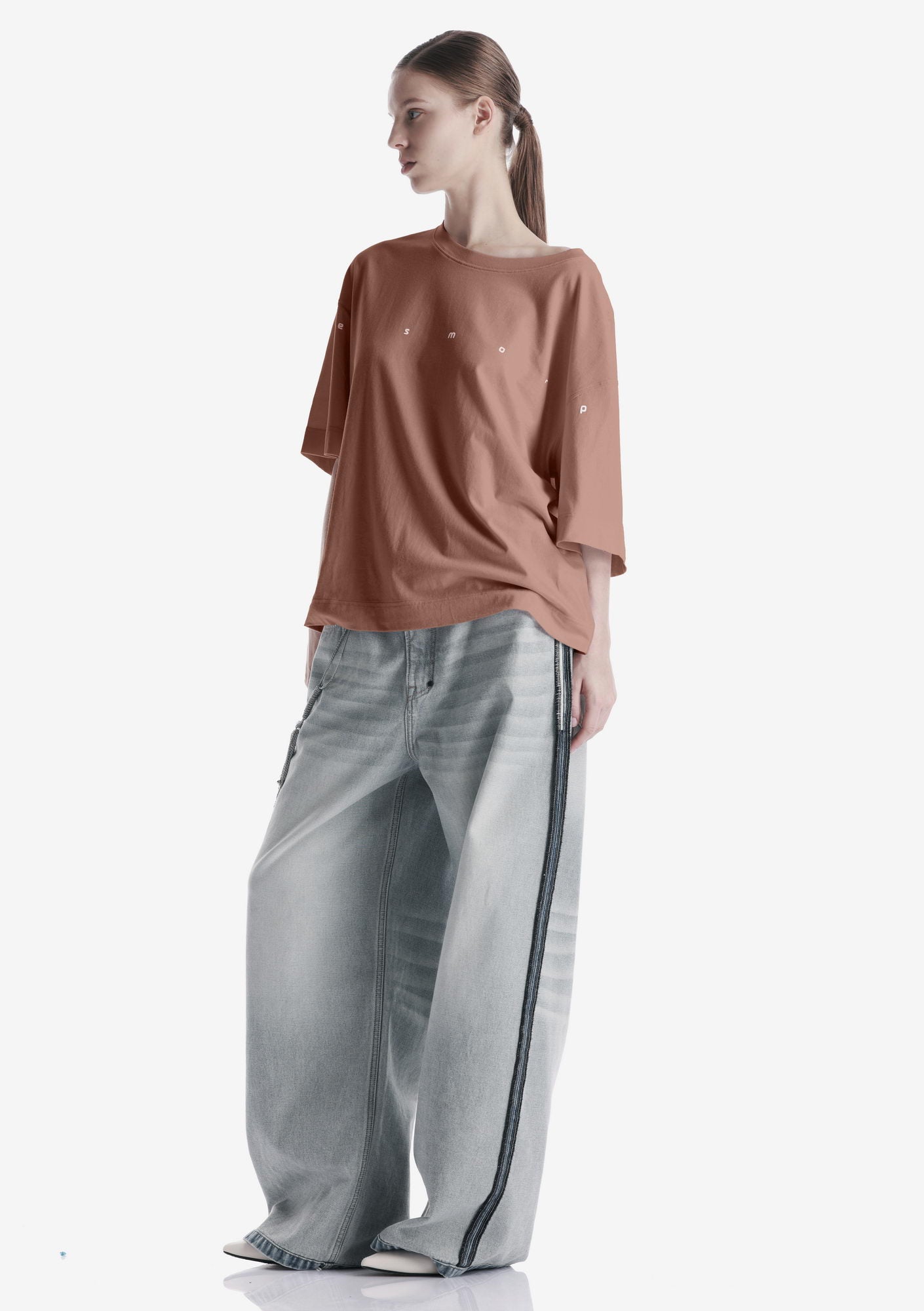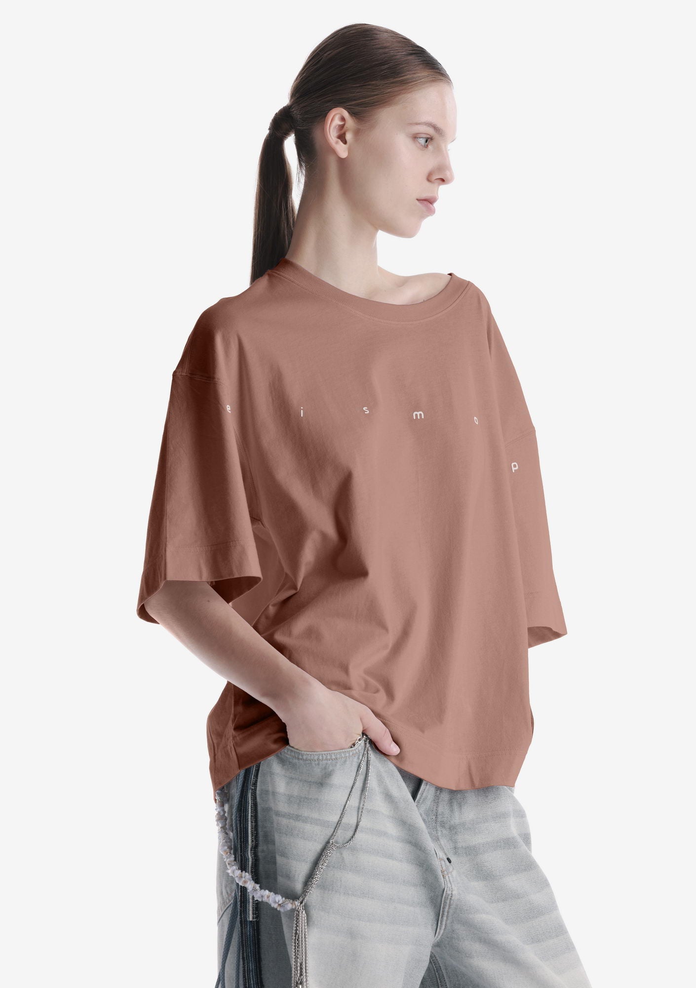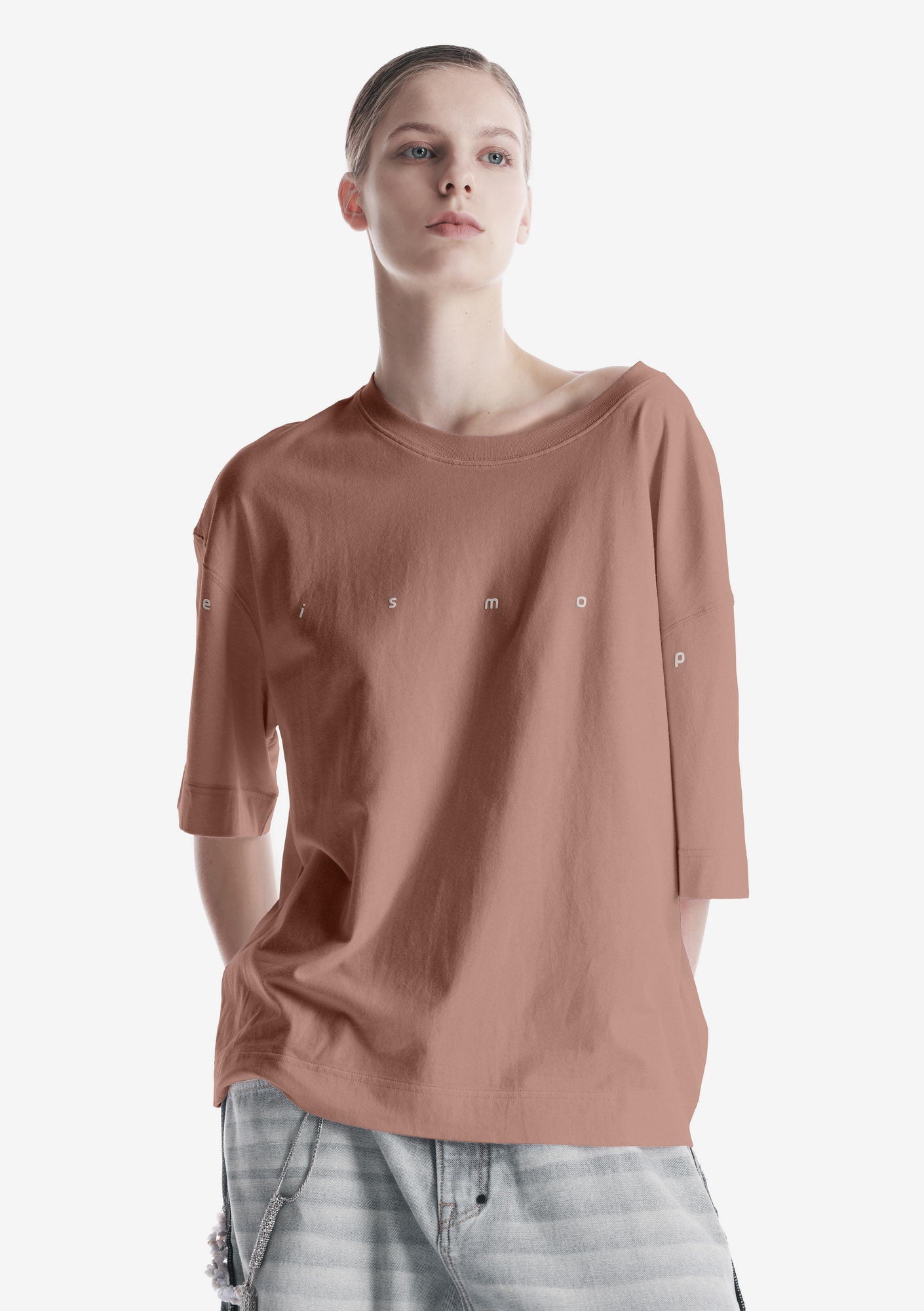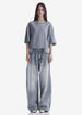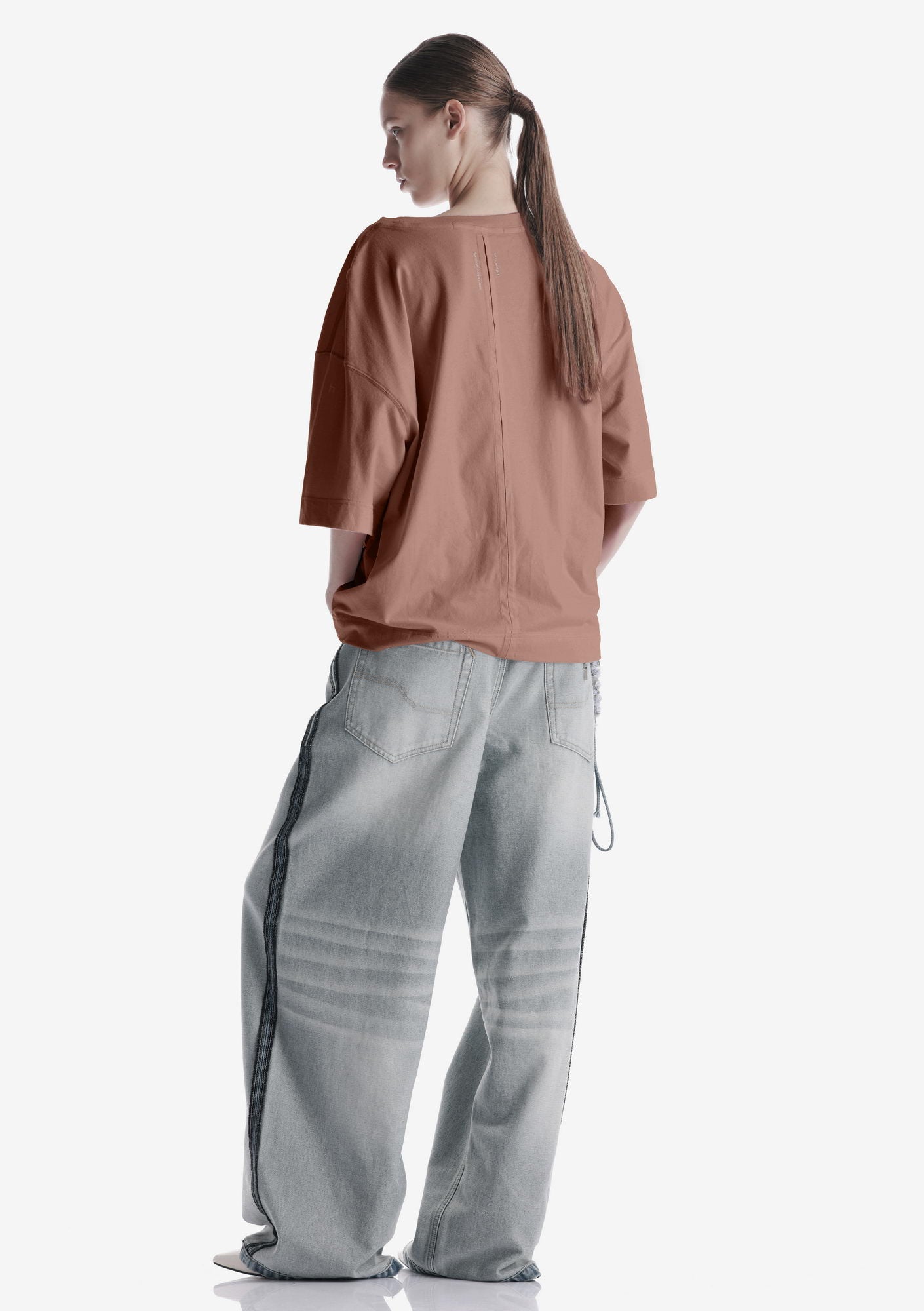 Свободная футболка из мягкого хлопкового джерси с лёгким ворсом и однородной структурой. Трикотажная горловина поддерживает форму, принт спереди и сзади создаёт графичный акцент, а центральная складка на спинке добавляет свободу движения.
