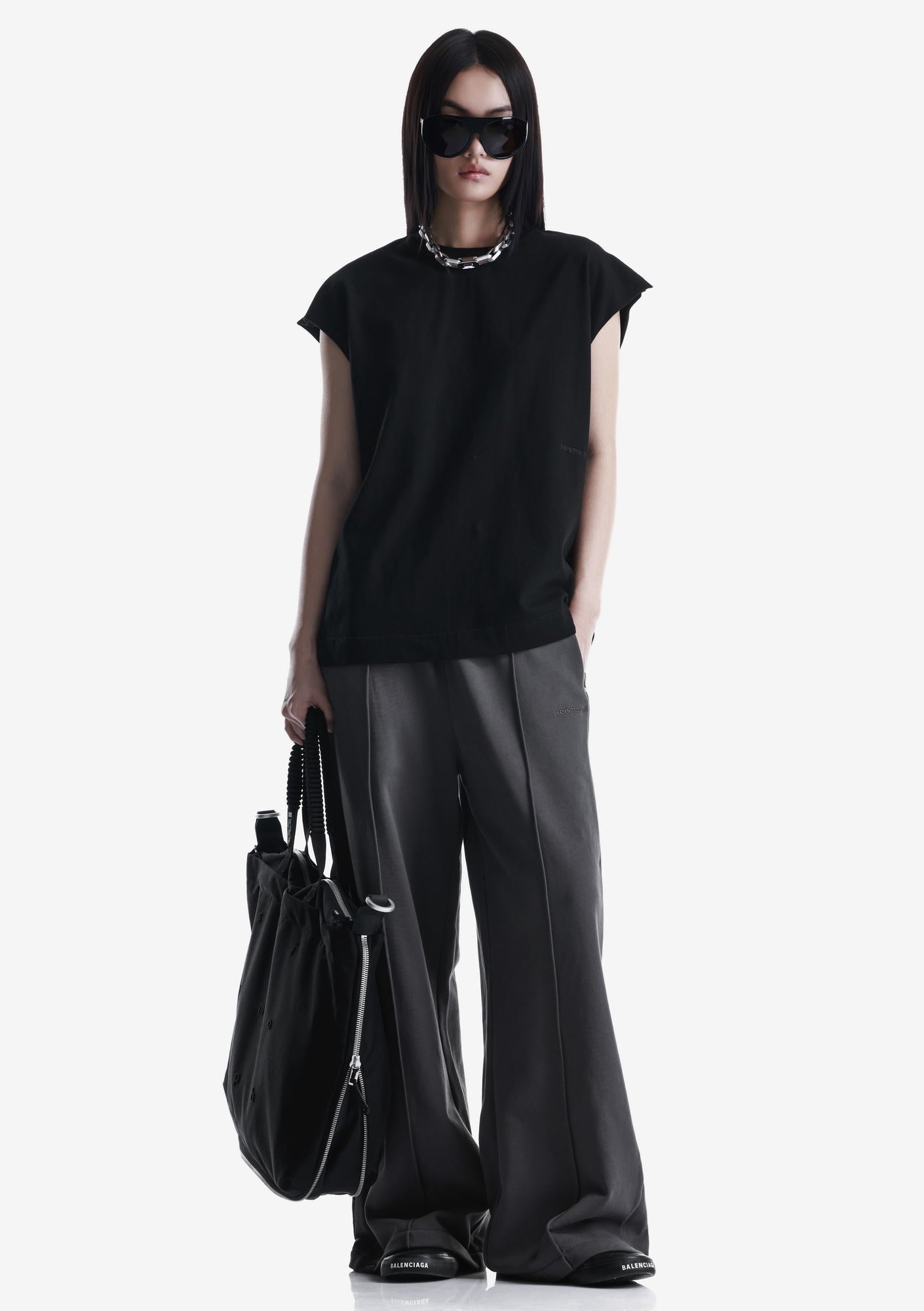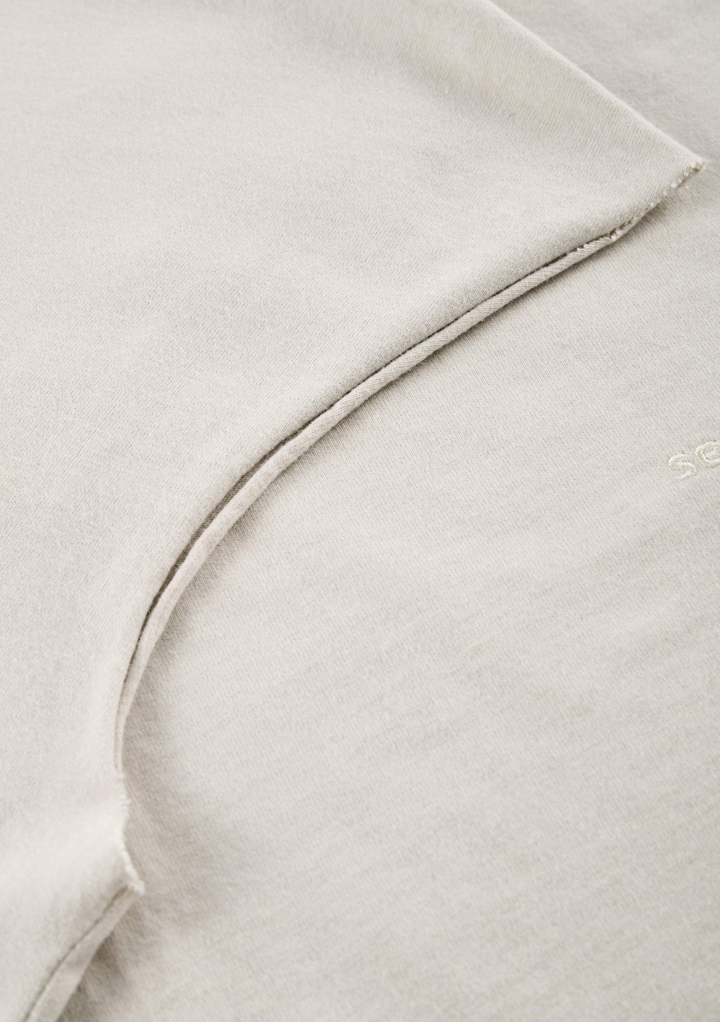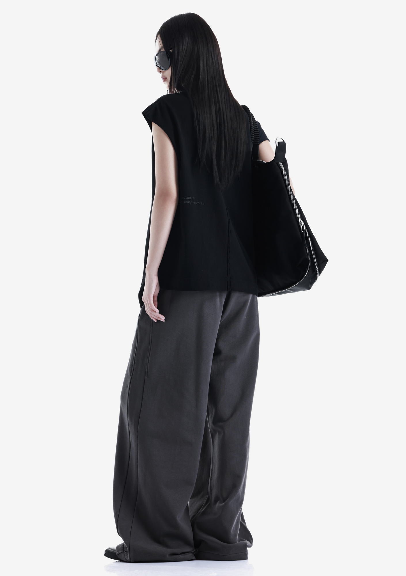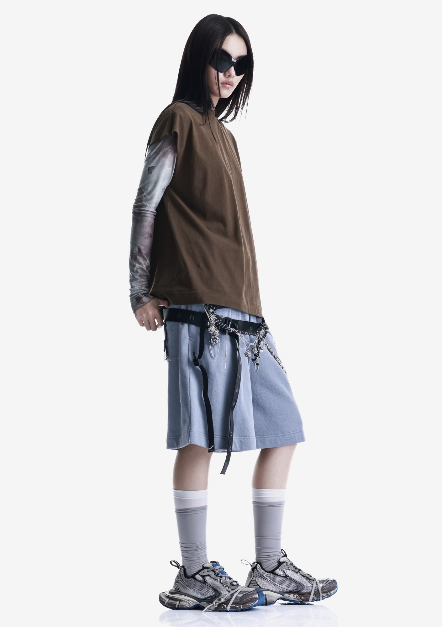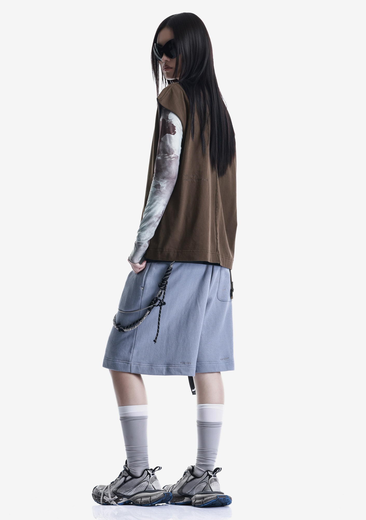 Футболка-безрукавка KHURU из мягкого хлопкового джерси с начёсом. Вышивка и открытый шов по центру спинки создают графичный акцент, необработанные проймы поддерживают свободный характер модели.