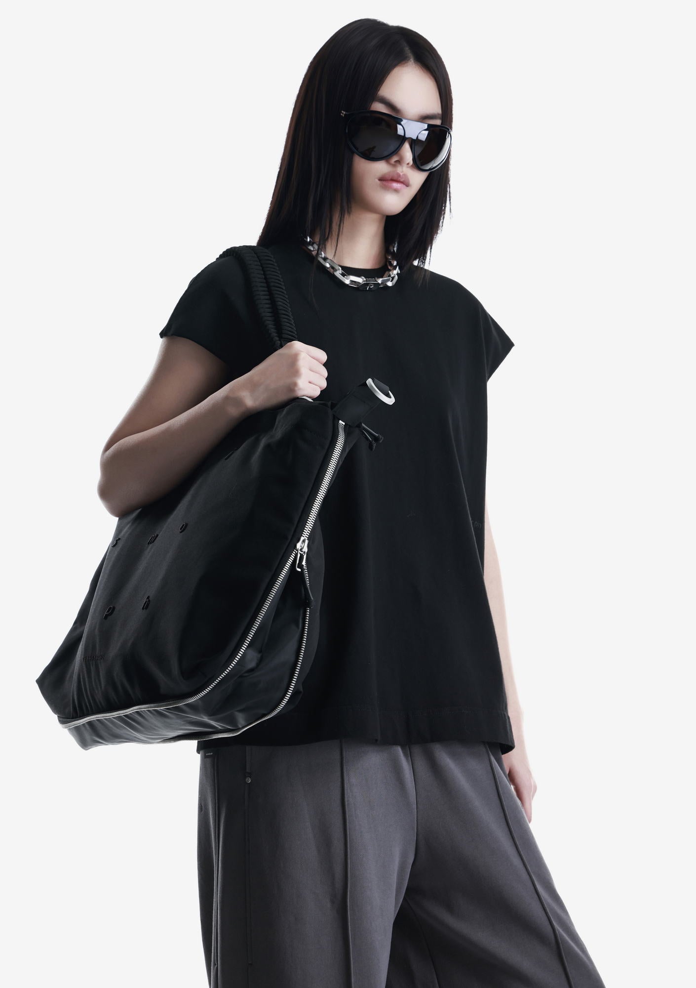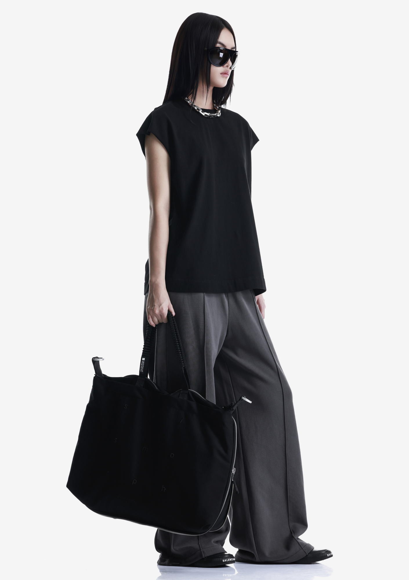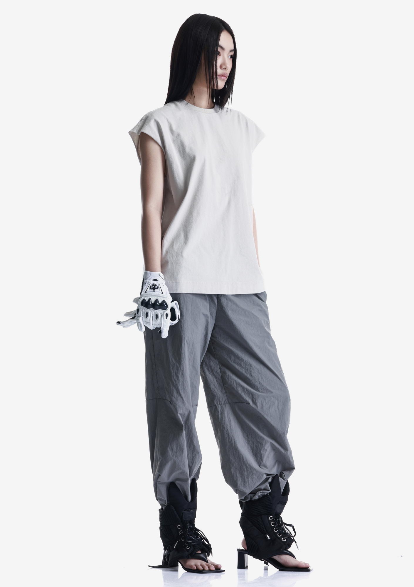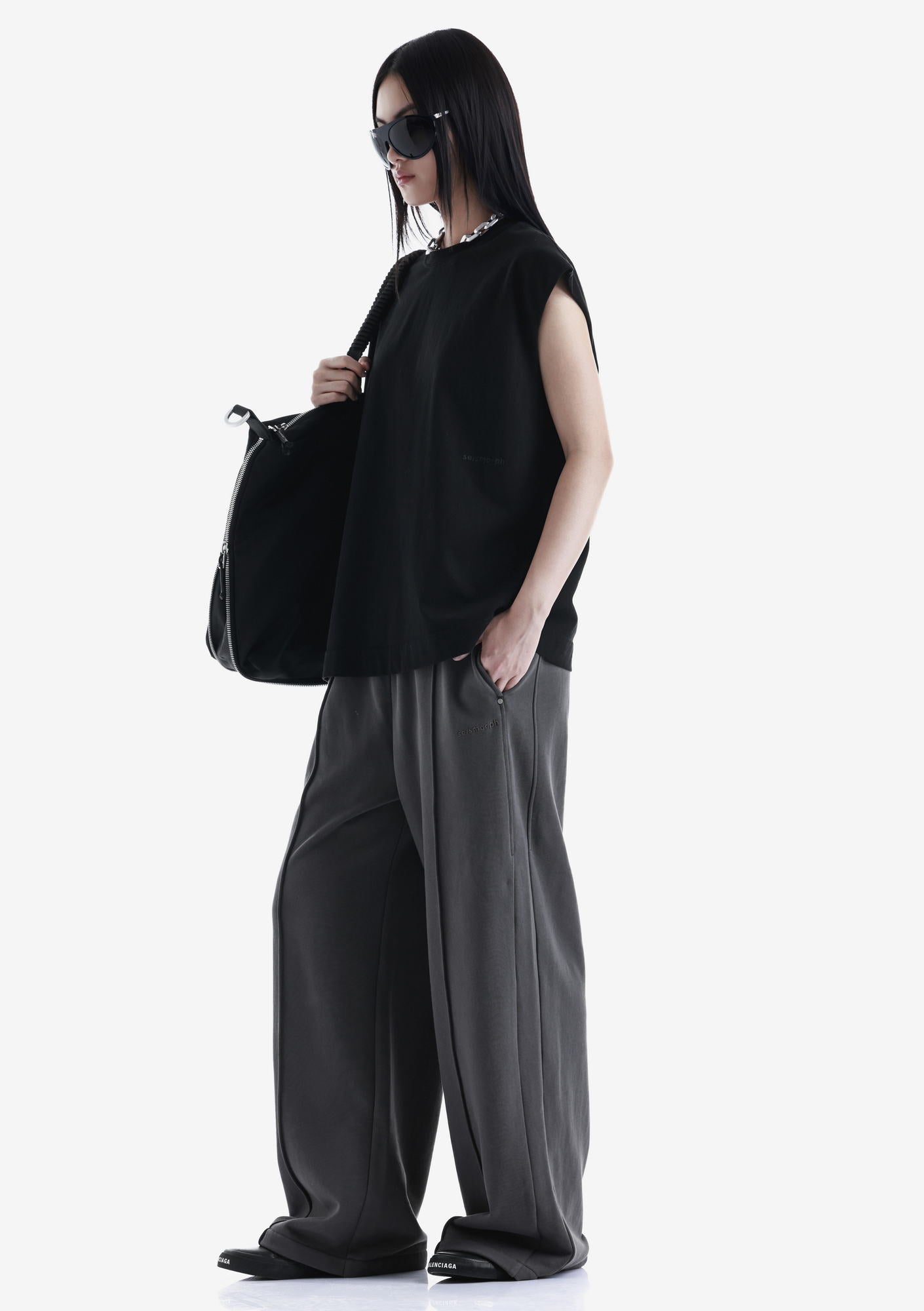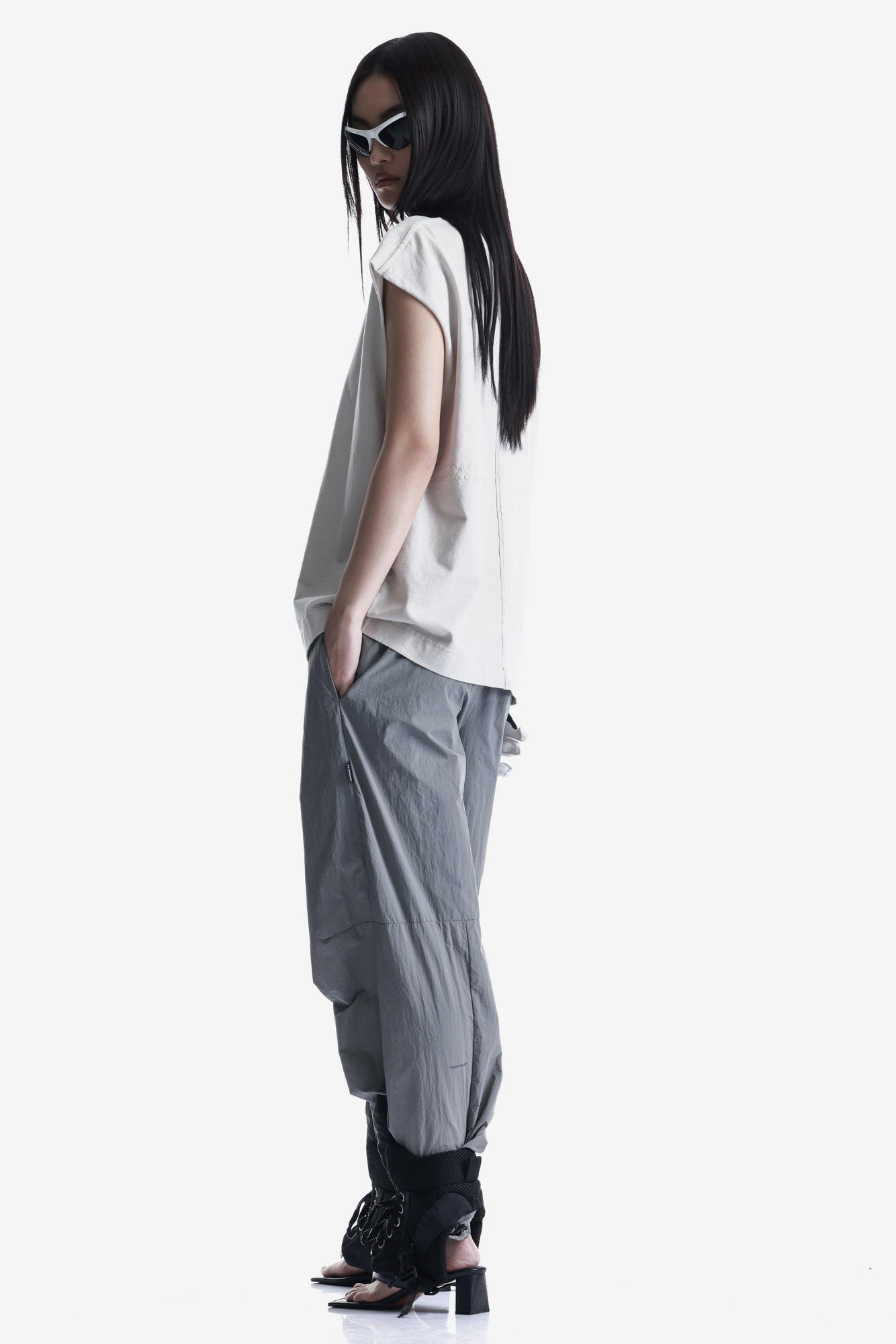Футболка-безрукавка KHURU из мягкого хлопкового джерси с начёсом. Вышивка и открытый шов по центру спинки создают графичный акцент, необработанные проймы поддерживают свободный характер модели.