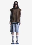 Футболка-безрукавка KHURU из мягкого хлопкового джерси с начёсом. Вышивка и открытый шов по центру спинки создают графичный акцент, необработанные проймы поддерживают свободный характер модели.