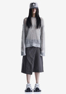 Свитер WARP с круглым вырезом и удлинёнными рукавами выполнен сетчатой вязкой, создающей лёгкую, фактурную структуру. Смесовая пряжа на основе нейлона, акрила, шерсти и мохера сочетает мягкость, тепло и устойчивость формы, сохраняя прочность и комфорт в носке.