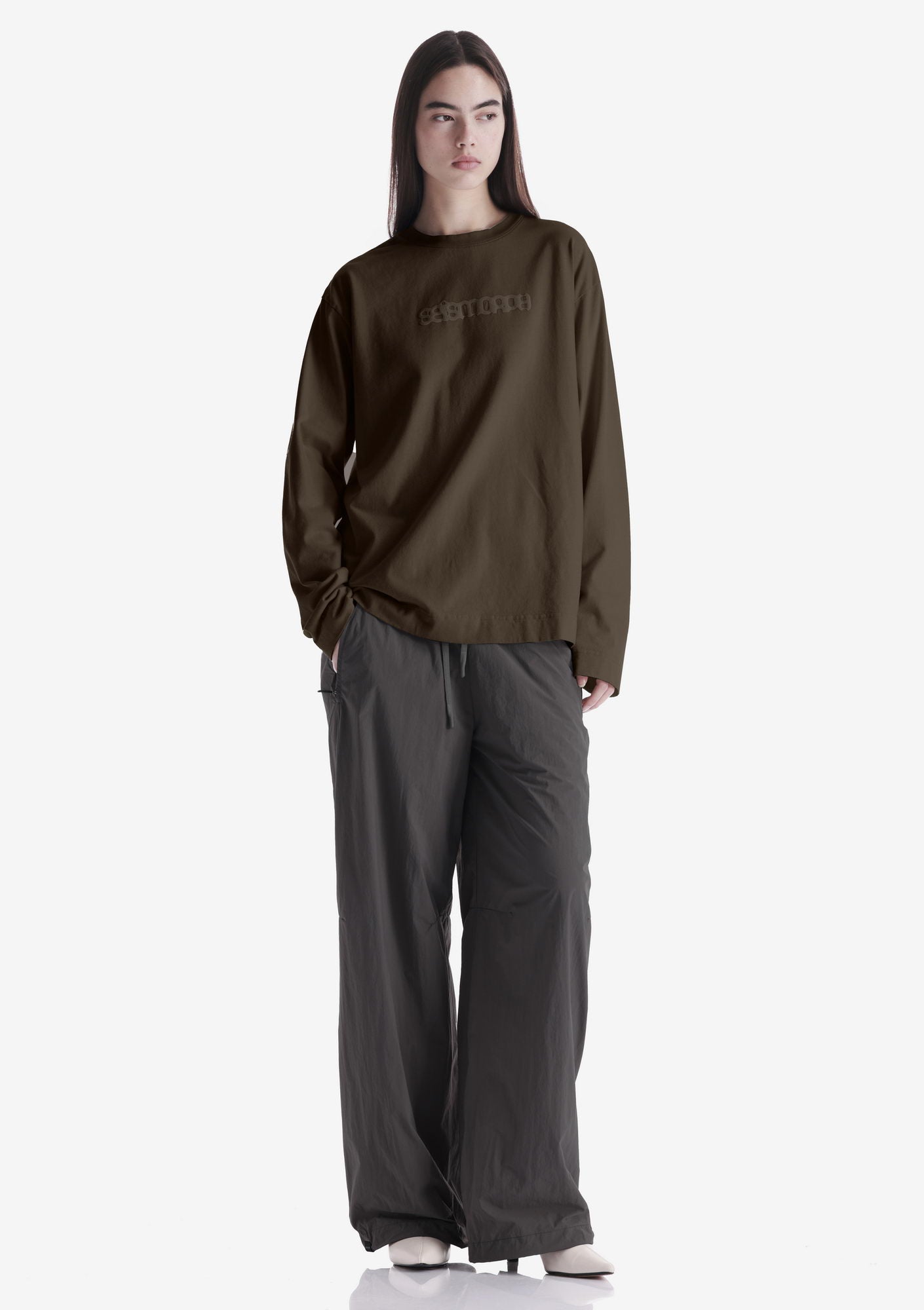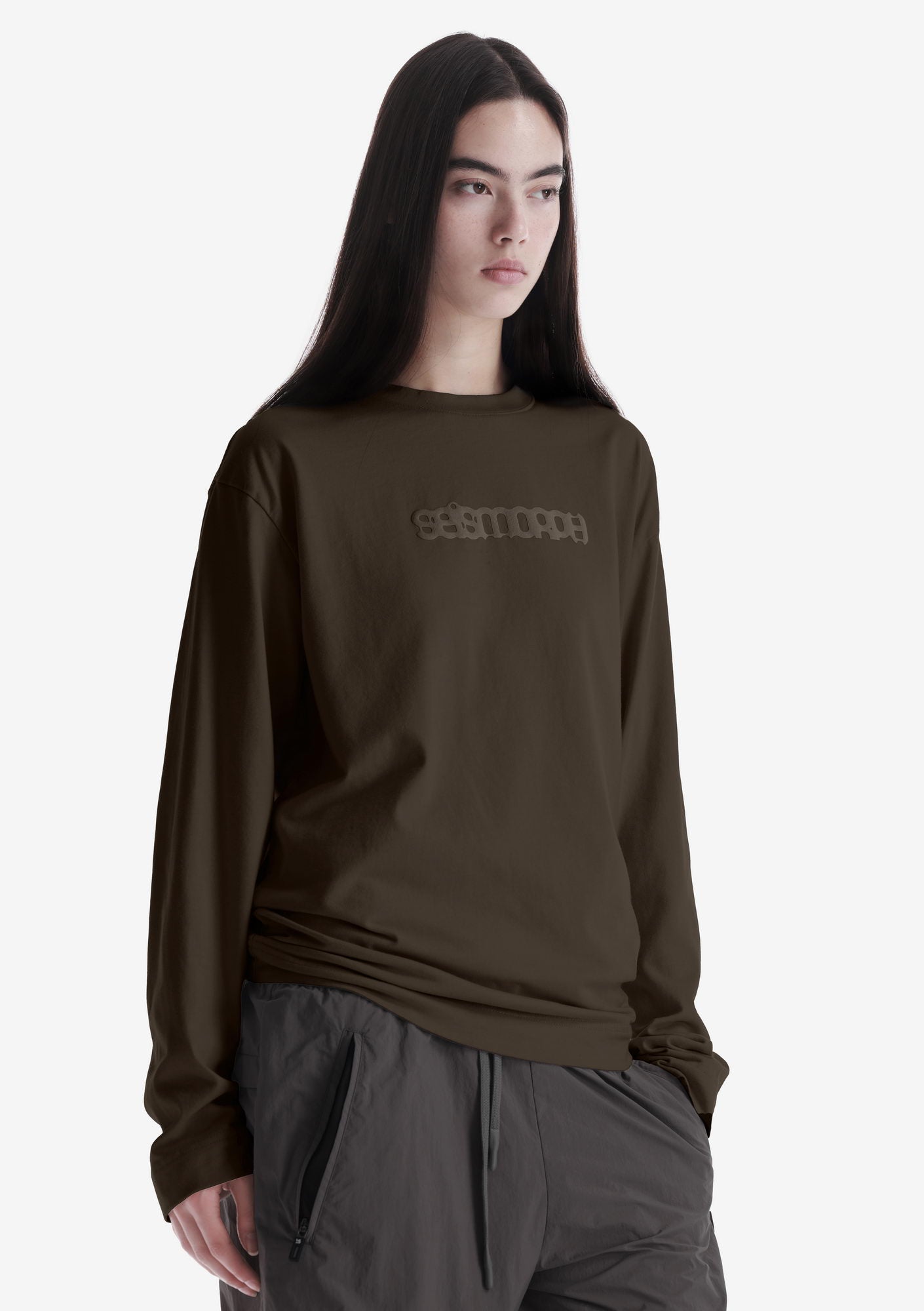 Лонгслив с тональным лого из мягкого хлопкового джерси с начёсом и ровной поверхностью, обеспечивающей комфорт в носке. Рибовая горловина поддерживает стабильную посадку, а тональная печать создаёт визуальный акцент.