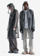 Дождевик-трансформер TETHYS из полупрозрачного плотного водонепроницаемого полиуретана с герметизированными швами. Оснащён водозащитными карманами и регулируемой длиной, позволяющей носить этот дождевик в качестве длинного плаща и короткой куртки.